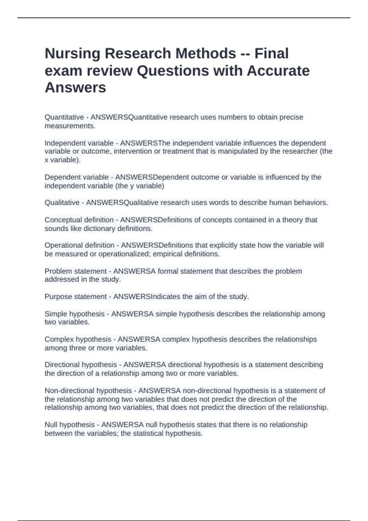 Nursing Research Methods and Critical Appraisal CH 10 Questions with Correct AnswersNursing Research Methods and Critical Appraisal CH 10 Questions with Correct AnswersNursing Research Methods and Critical Appraisal CH 10 Questions with Correct AnswersNursing Research Methods and Critical Appraisal CH 10 Questions with Correct AnswersNursing Resear