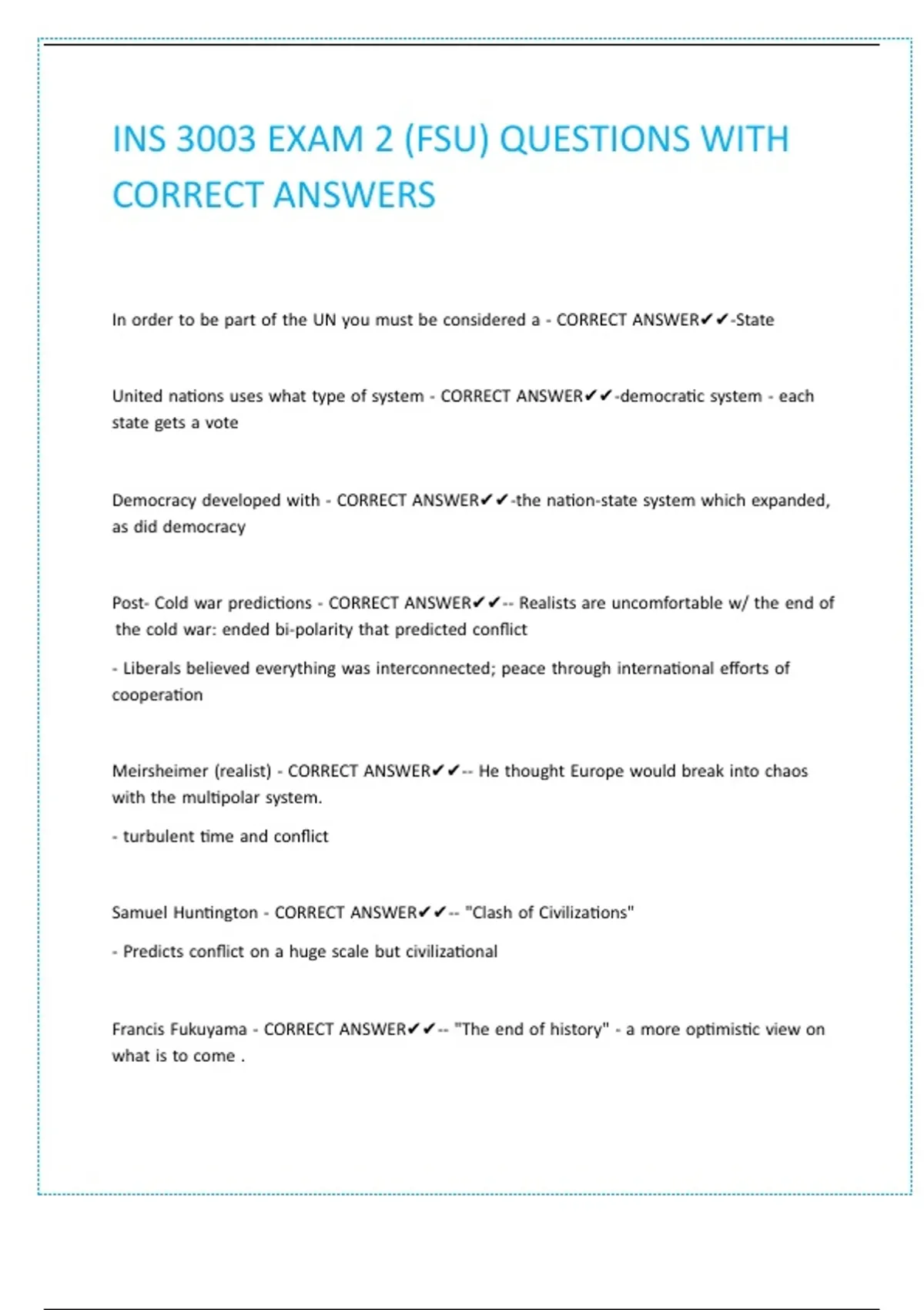 INS 3003 FSU FINAL EXAM QUESTIONS WITH CORRECT ANSWERS