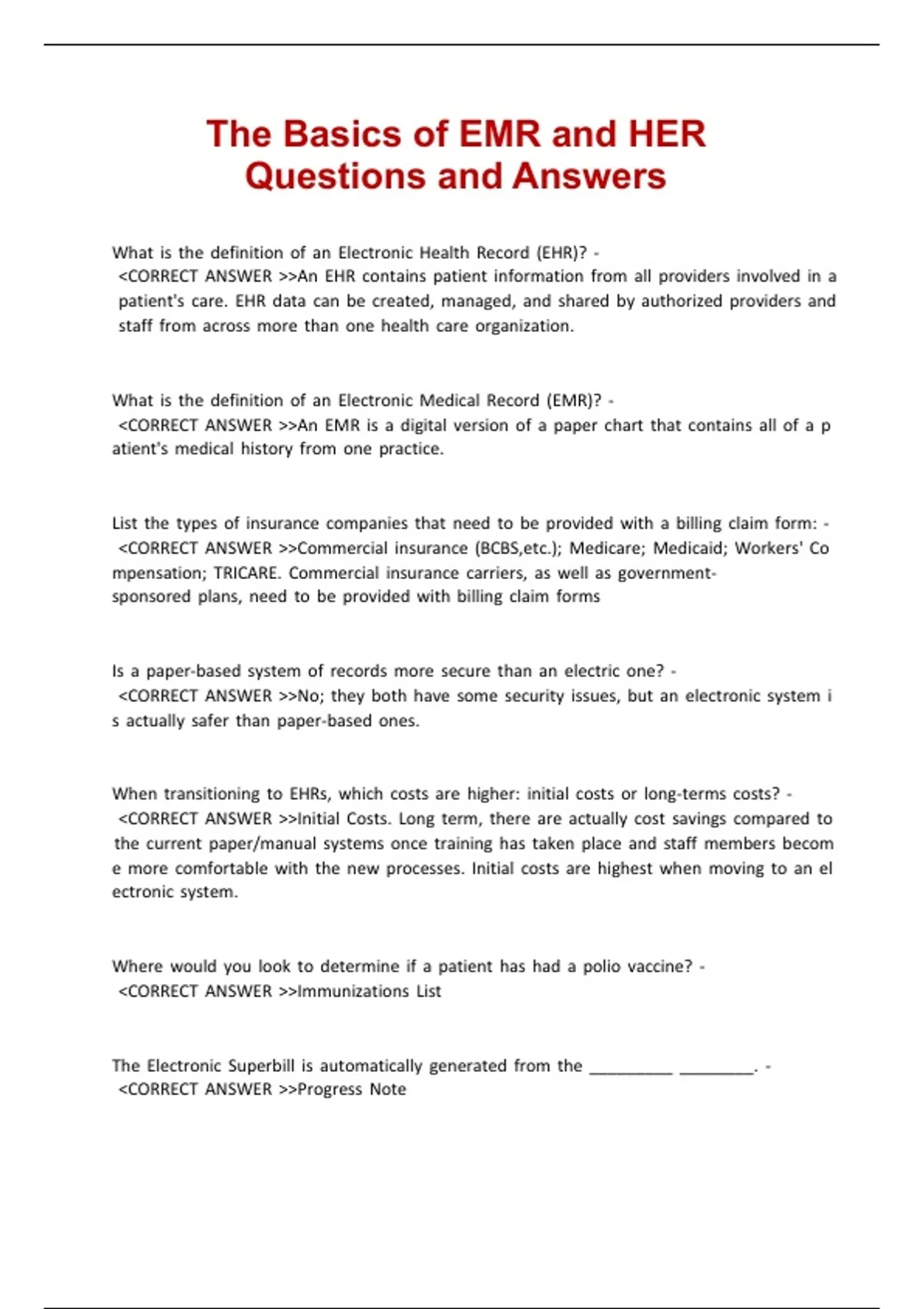 Electronic Health Record Practice Exam Questions and Answers 2026