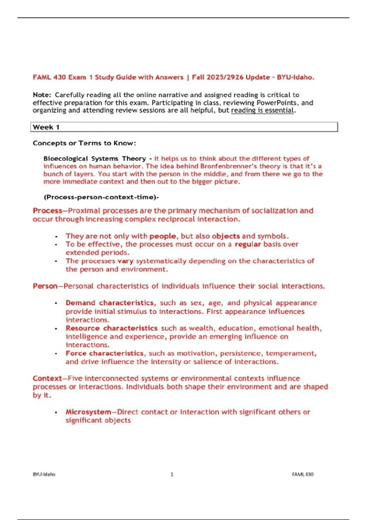 FAML 430 Exam 1 Study Guide with Answers | Fall 2025/2926 Update – BYU-Idaho.