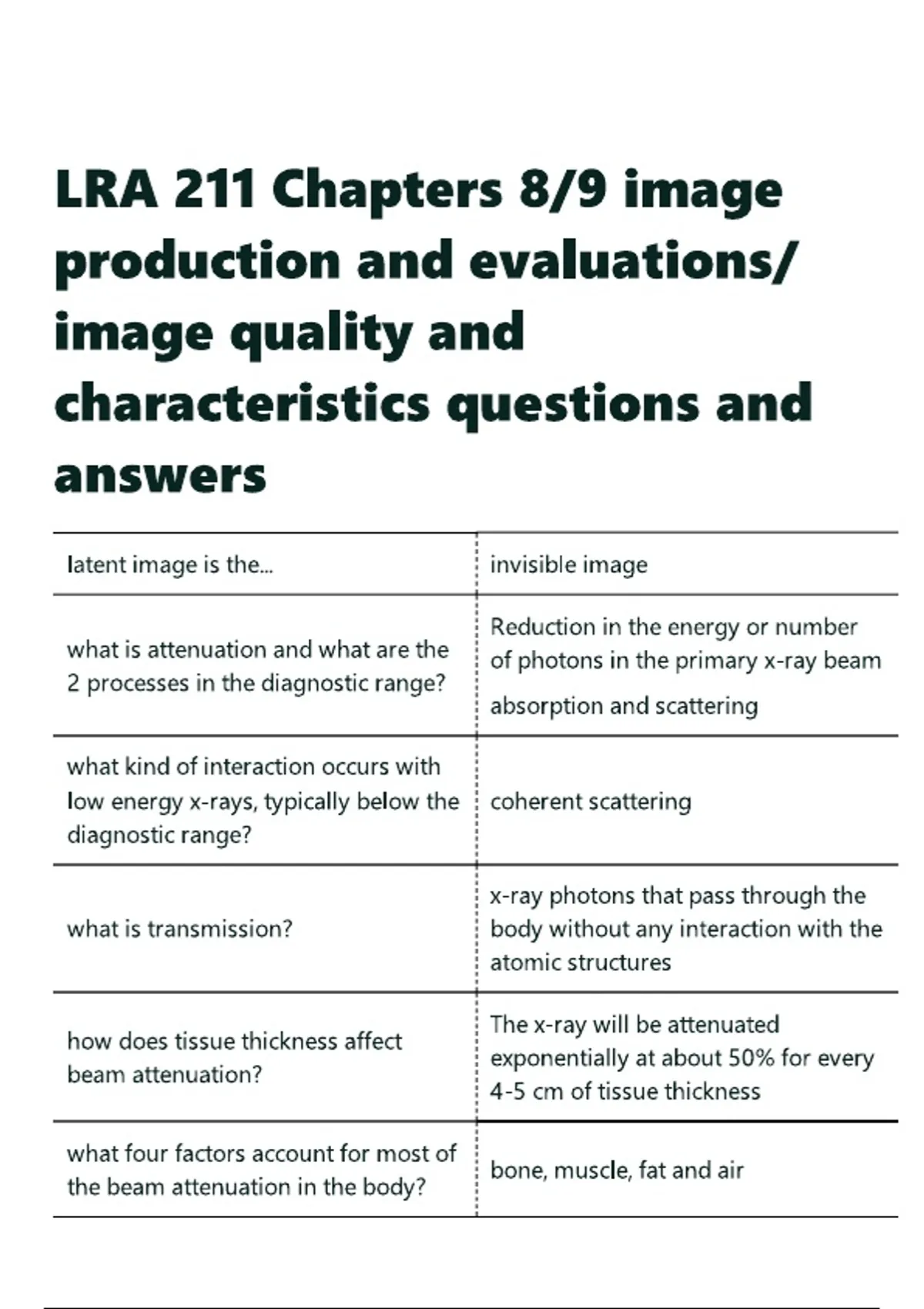 LRA 211 Chapters 8 9 image production and evaluations image quality and characteristics questions and