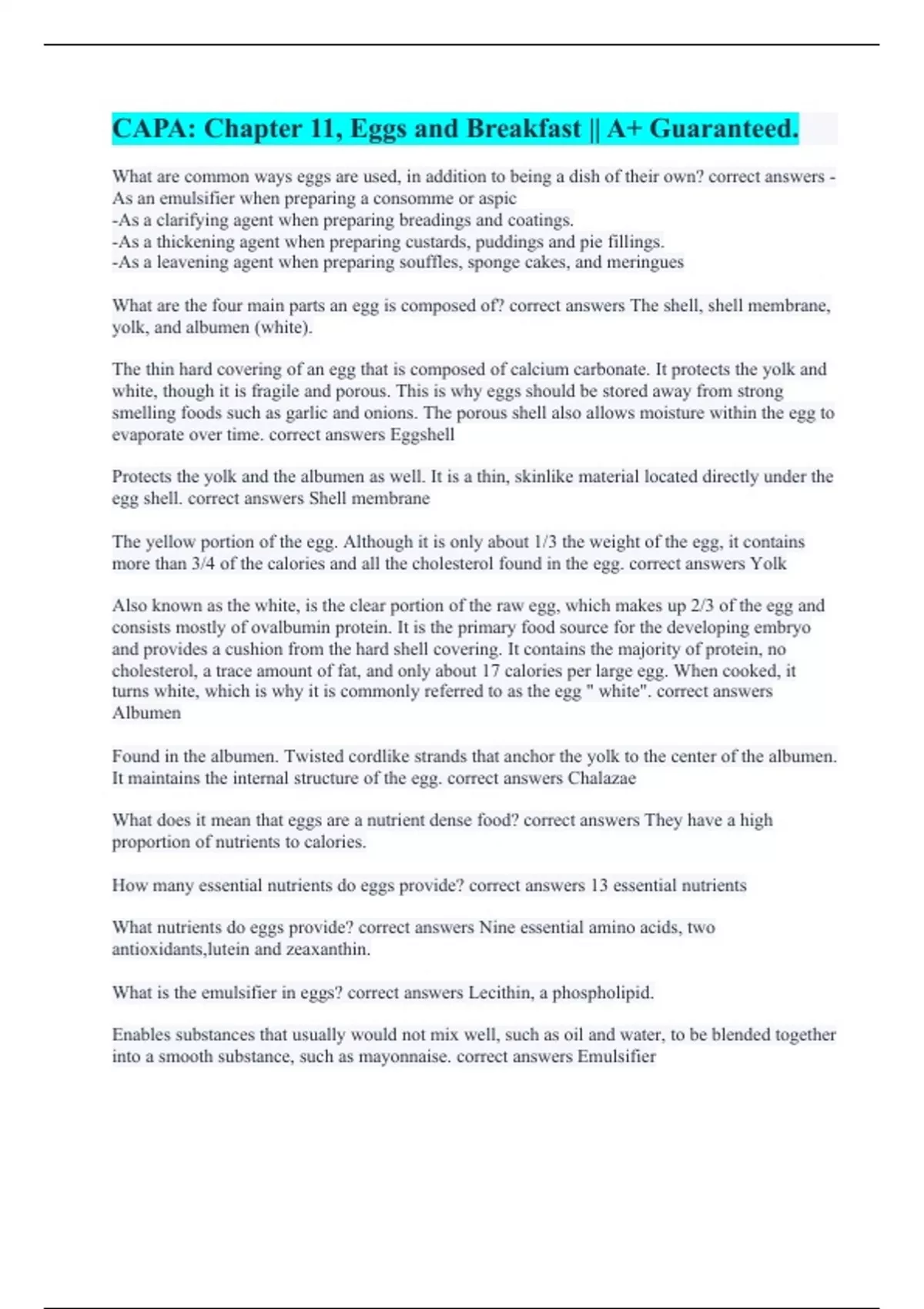 CAPA Certification Exam || Accurate Answers 100%. CPAN/CAPA set #2 || with Errorless Answers. CAPA: Chapter 11, Eggs and Breakfast || A+ Guaranteed. PESI CAPA/CPAN test || Solved Correctly. CPAN/CAPA set #2 || All Accurate. CAPA/CPAN || 100% Errorless Answers. CAPA – Question and Answers - ACC CAPA practice questions form 1 || with Correct Answers.
