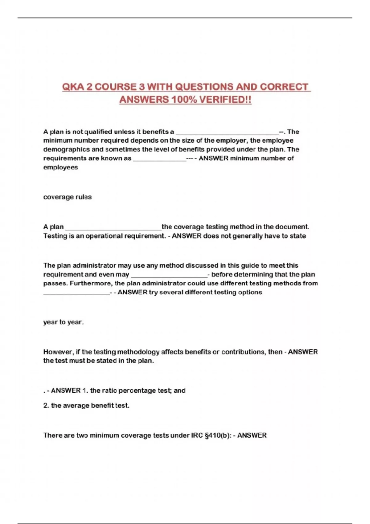 QKA 2 COURSE 3 WITH QUESTIONS AND CORRECT ANSWERS 100% VERIFIED!!
