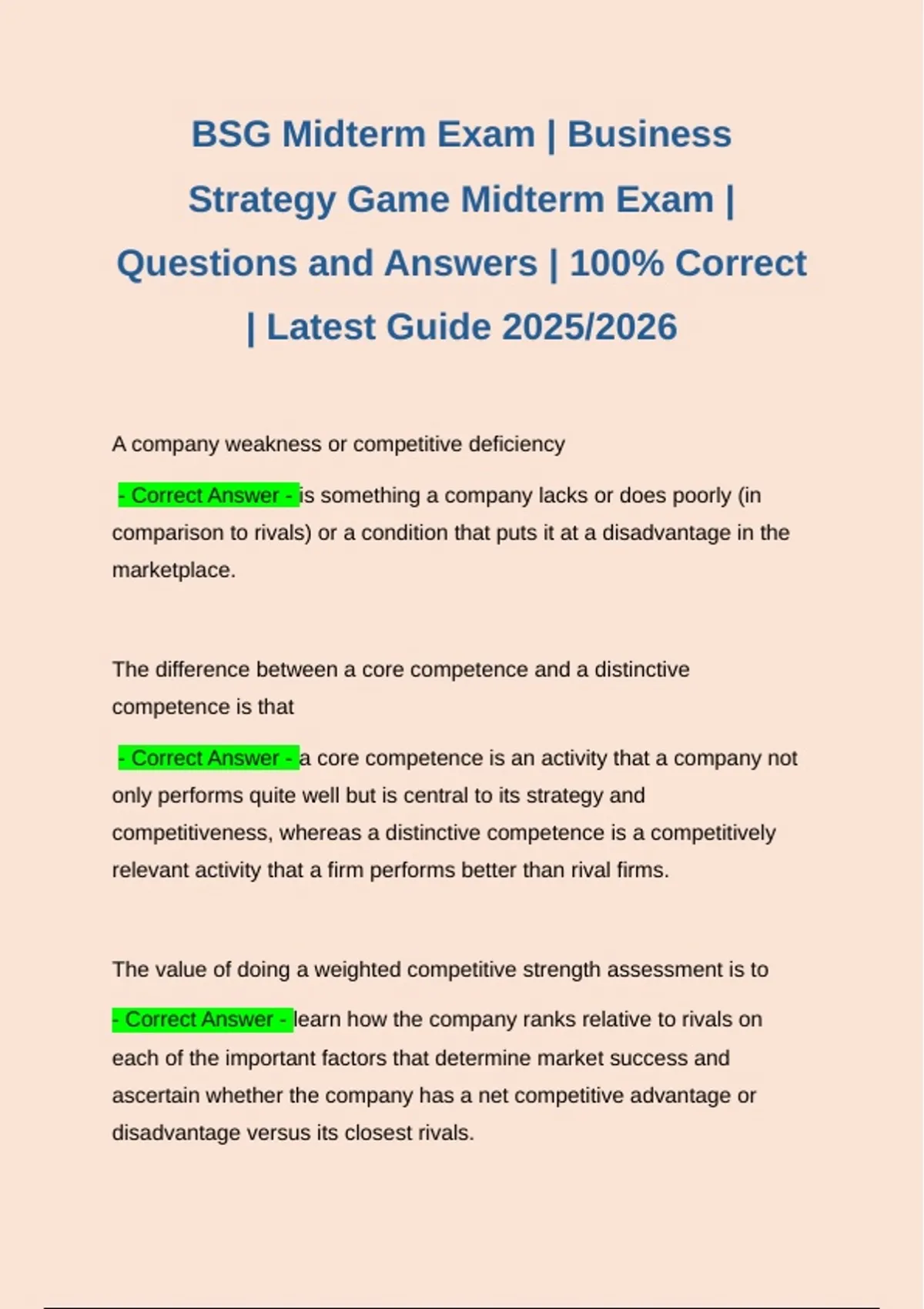 BSG MIDTERM EXAM | BUSINESS STRATEGY GAME EXAM MIDTERM EXAM | 100% CORRECTLY ANSWERED AND GRADED A+ | 2025/2026 GUIDE