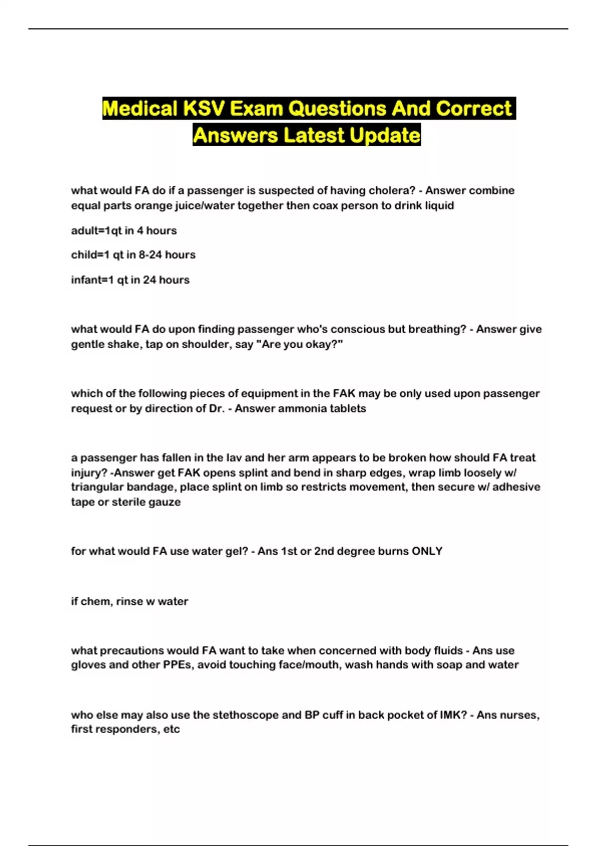 Medical KSV Exam Questions And Correct Answers Latest Update