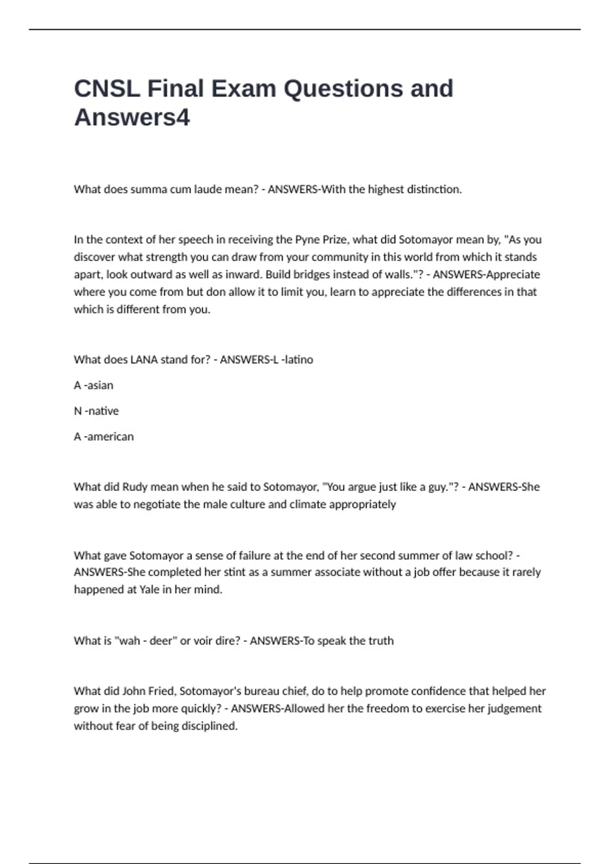 CNSL Final Exam Questions and Answers