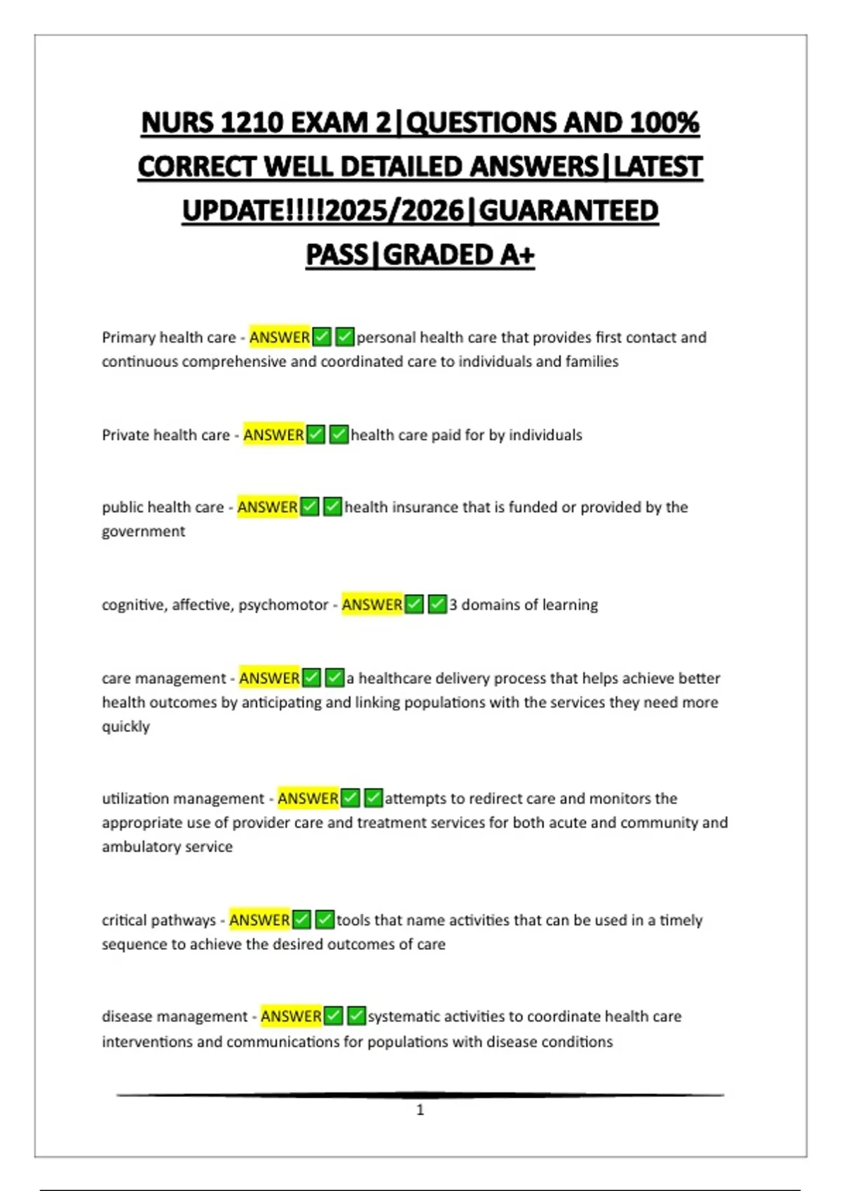 NURS 1210 EXAM 2|QUESTIONS AND 100% CORRECT WELL DETAILED ANSWERS|LATEST UPDATE!!!!2025/2026|GUARANTEED PASS|GRADED A+
