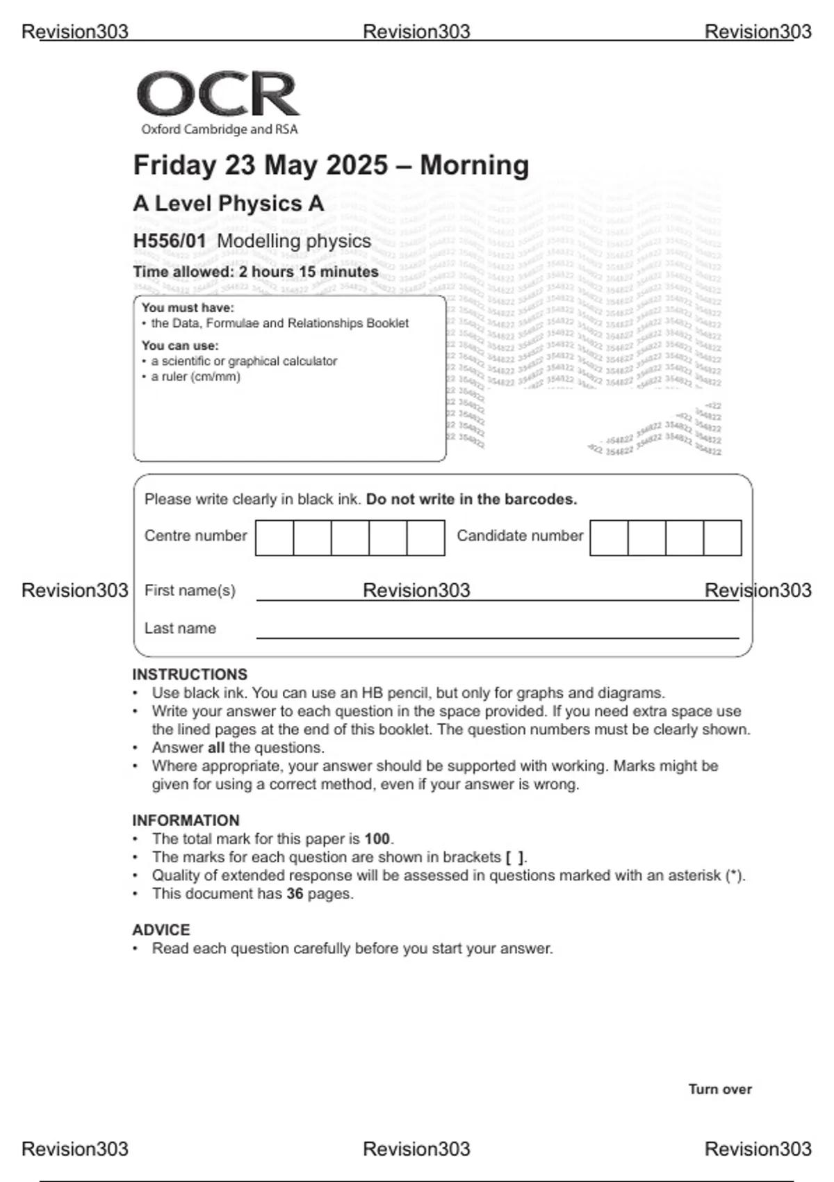 OCR 2025 A level Physics A Papers 1, 2 & 3 with Mark schemes