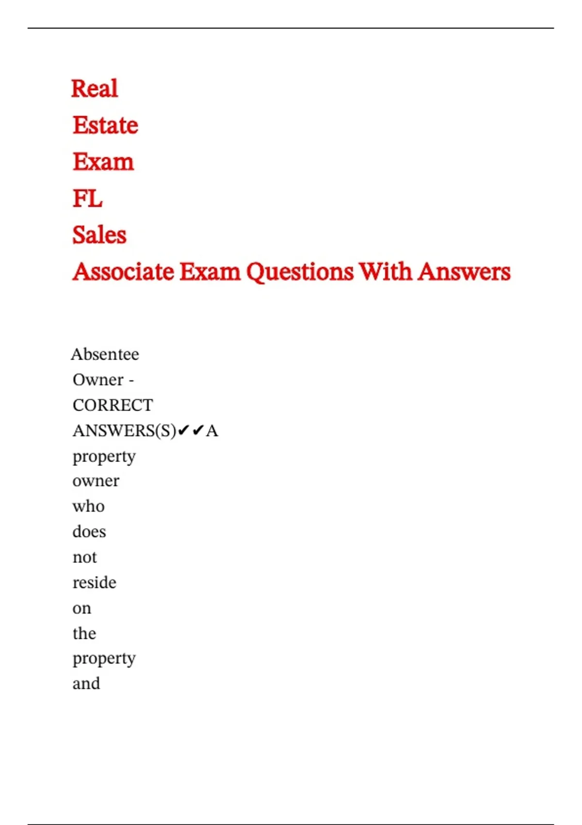 Florida Real Estate Exam Questions With Correct Answers