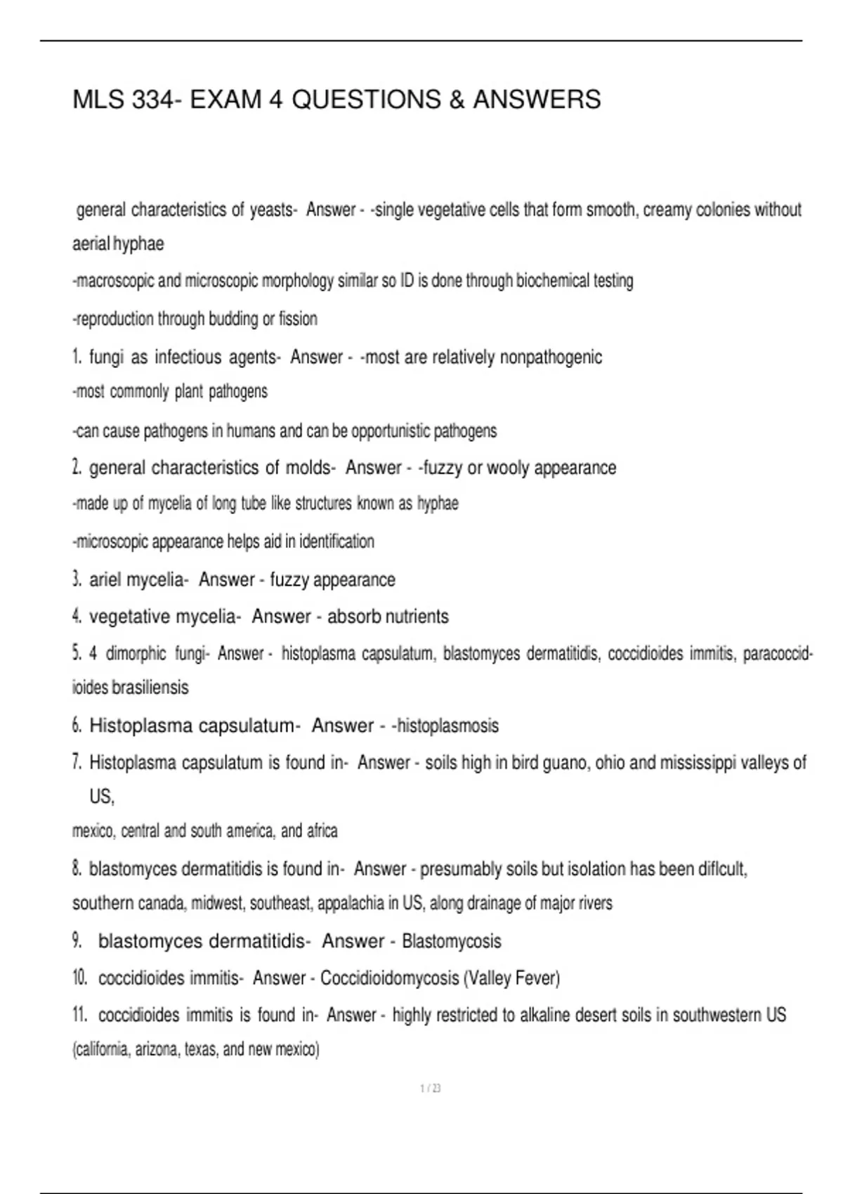 MLS 334 EXAM 1QUESTIONS AND ANSWERS 2 Exam (elaborations) MLS 334 FINAL QUIZZES QUESTIONS & ANSWERS 3 Exam (elaborations) MLS 334 MYCOLOGY QUESTIONS & ANSWERS 4 Exam (elaborations) MLS 334- EXAM 4 QUESTIONS & ANSWERS 5 Exam (elaborations) MLS 334 EXAM 3 QUESTIONS & ANSWERS 6 Exam (elaborations) MLS 334 EXAM 2 QUESTIONS & ANSWERS 7 Exam (elabo