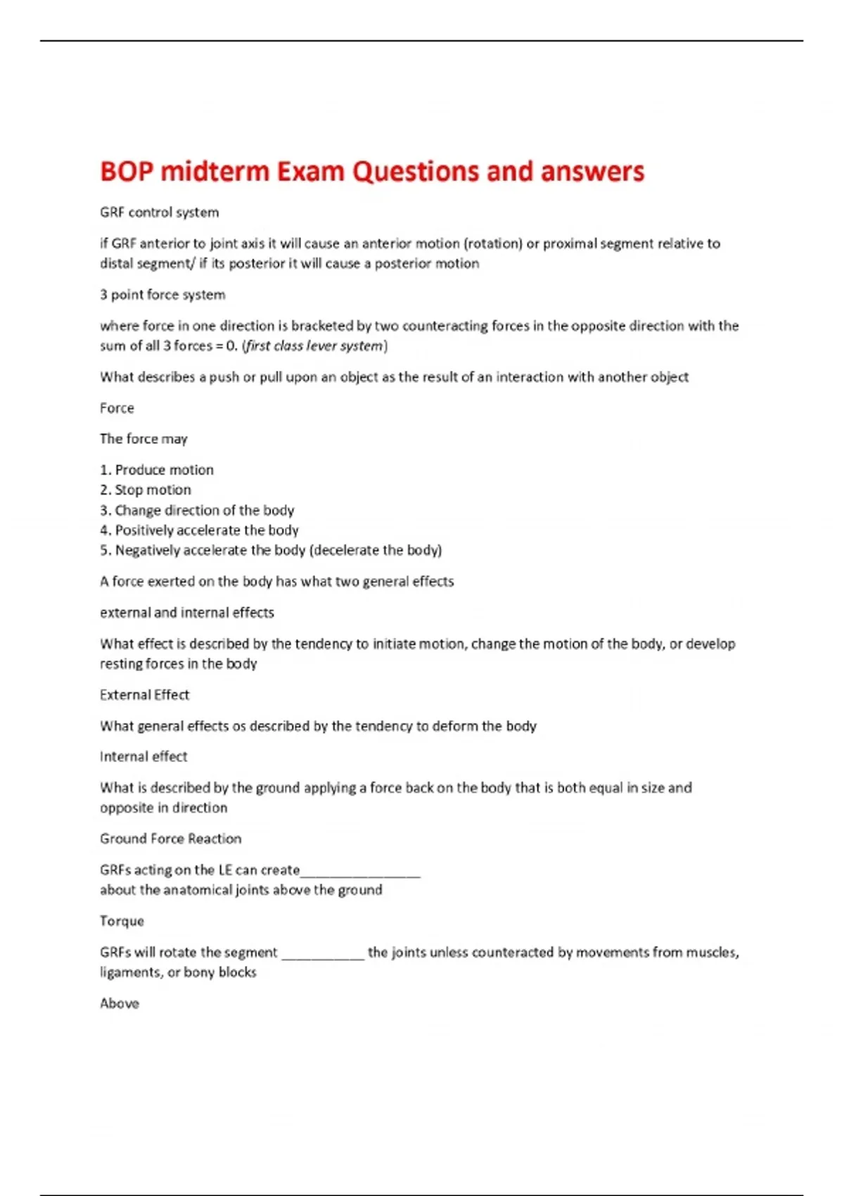 BOP Midterm Exam Questions and answers