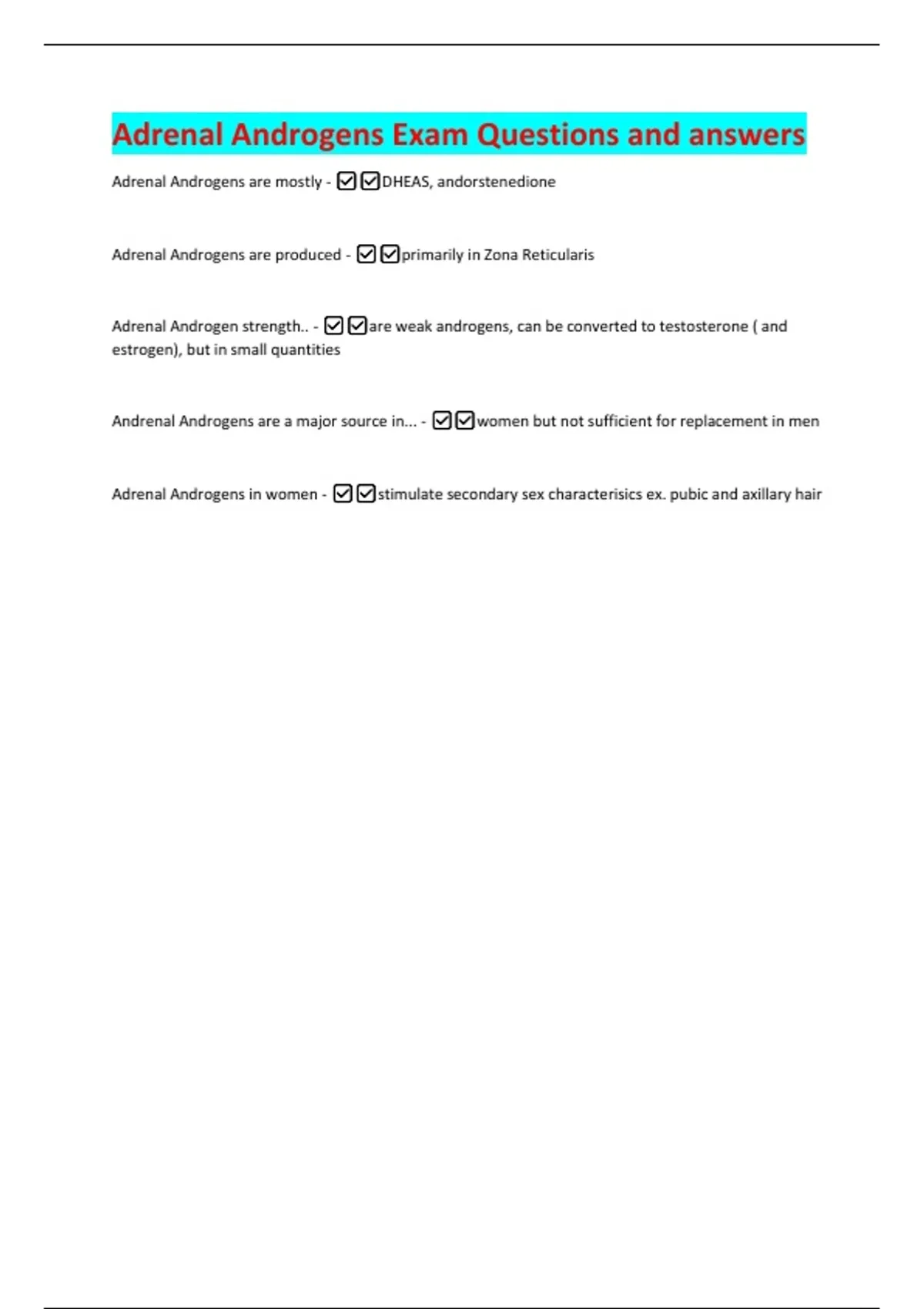 Adrenal Cortex Drug Therapy Exam Questions and answers