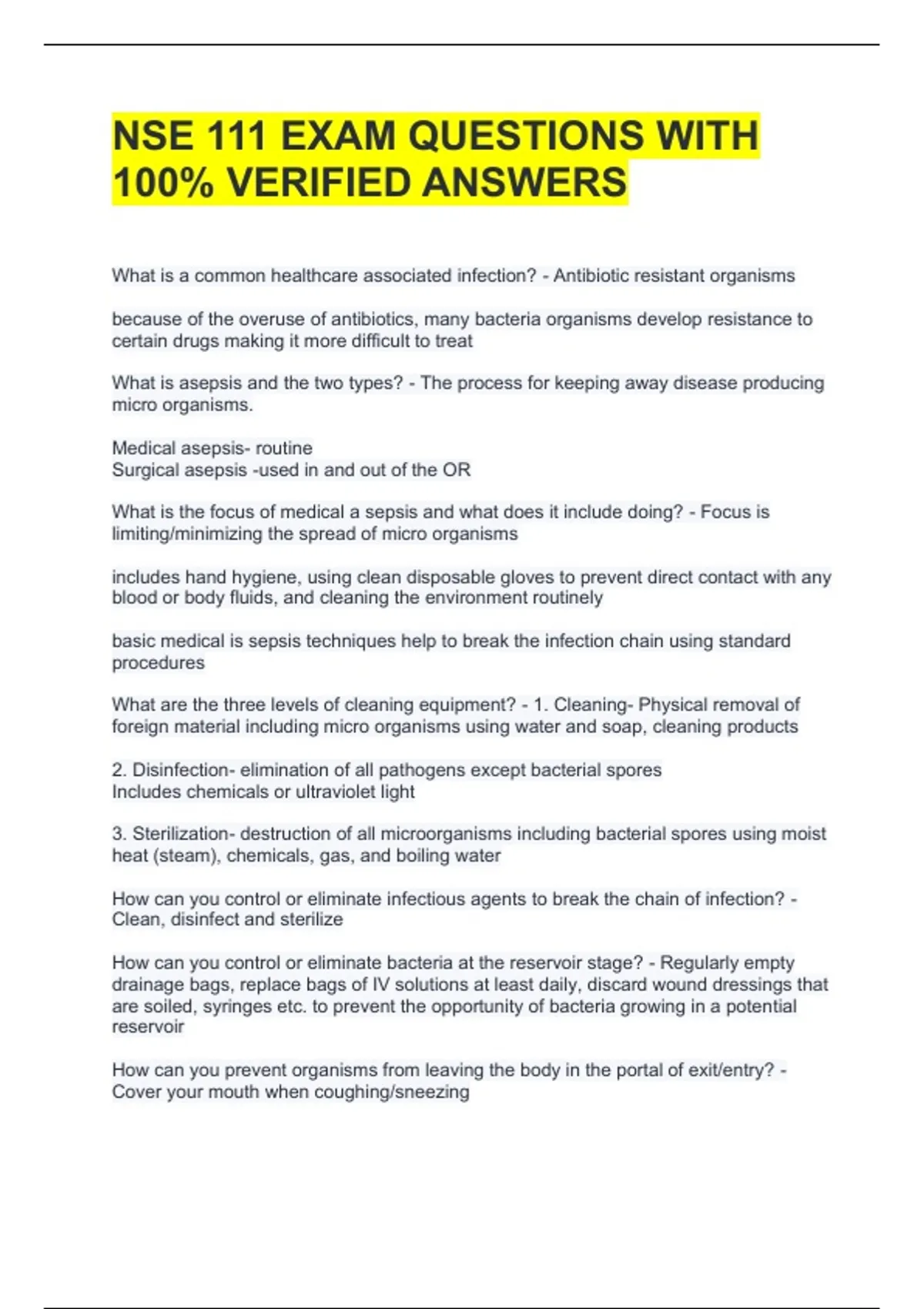 NSE 111 EXAM QUESTIONS WITH 100% VERIFIED ANSWERS 2 Exam (elaborations) NSE 111 TEST BANK QUESTIONS WITH COMPLETE SOLUTIONS 3 Exam (elaborations) NSE 111 FINAL REVIEW QUESTIONS WITH CORRECT DETAILED ANSWERS 4 Exam (elaborations) NSE 111 FINAL EXAM QUESTIONS WITH COMPLETE SOLUTIONS (GRADED A+) 5 Exam (elaborations) NSE 111 WEEK 9 EXAM QUESTIONS