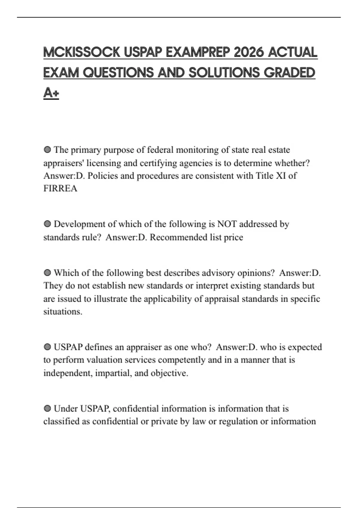 MCKISSOCK USPAP FINAL EXAM SCRIPT 2026 COMPLETE QUESTIONS AND ANSWERS GRADED A+