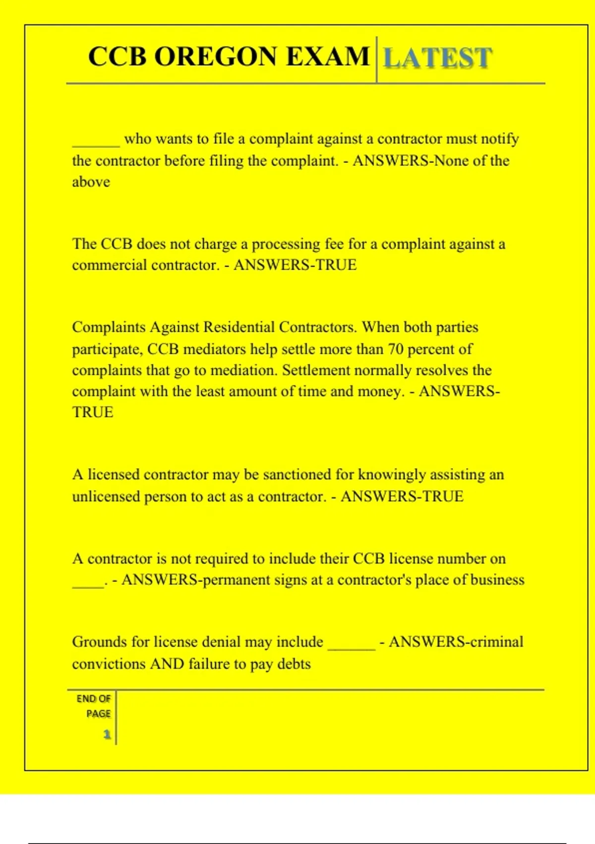 CCB OREGON EXAM BUNDLE DEAL CCB OREGON EXAM BUNDLE DEAL CCB OREGON EXAM BUNDLE DEAL