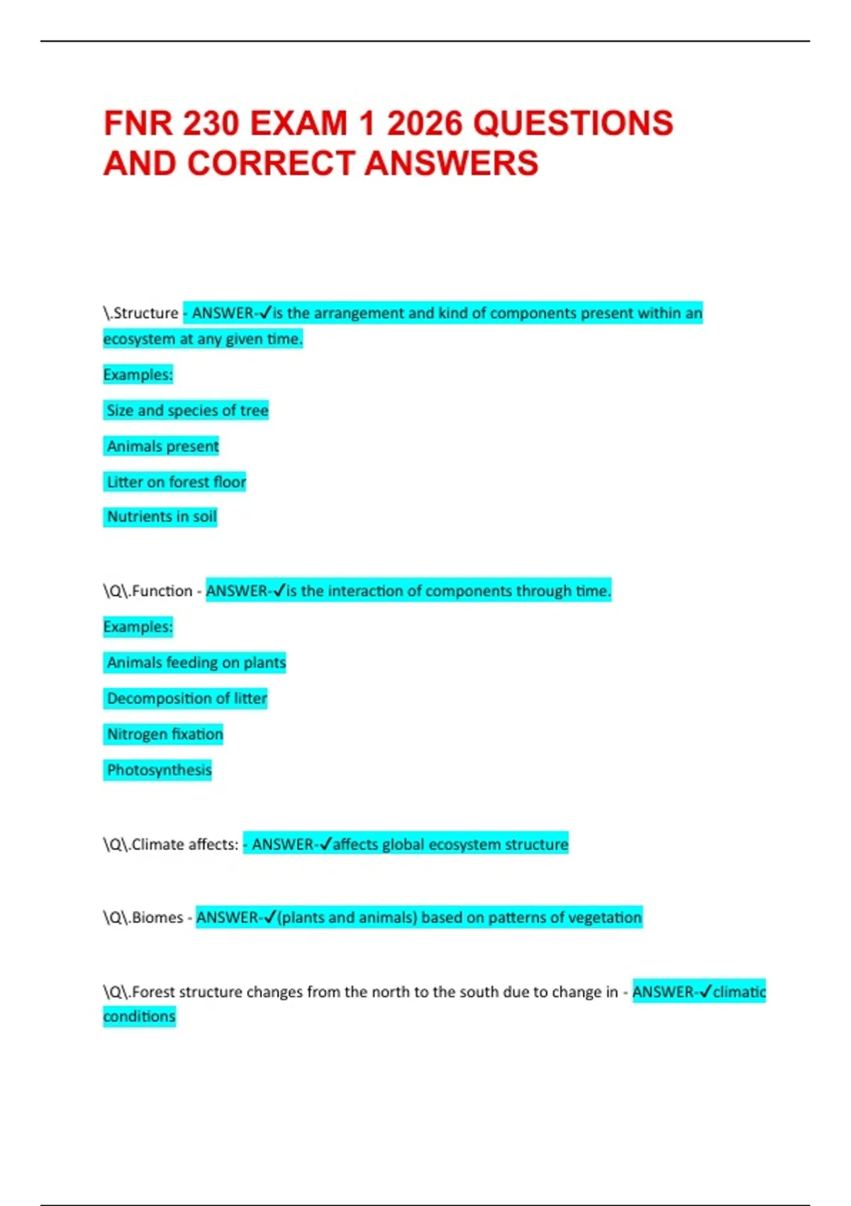 FNR 230 EXAM 1 REVIEW QUESTIONS AND 100% CORRECT ANSWERS 2 Exam (elaborations) FNR 230 EXAM 1 2026 QUESTIONS AND CORRECT ANSWERS || 100% PASS