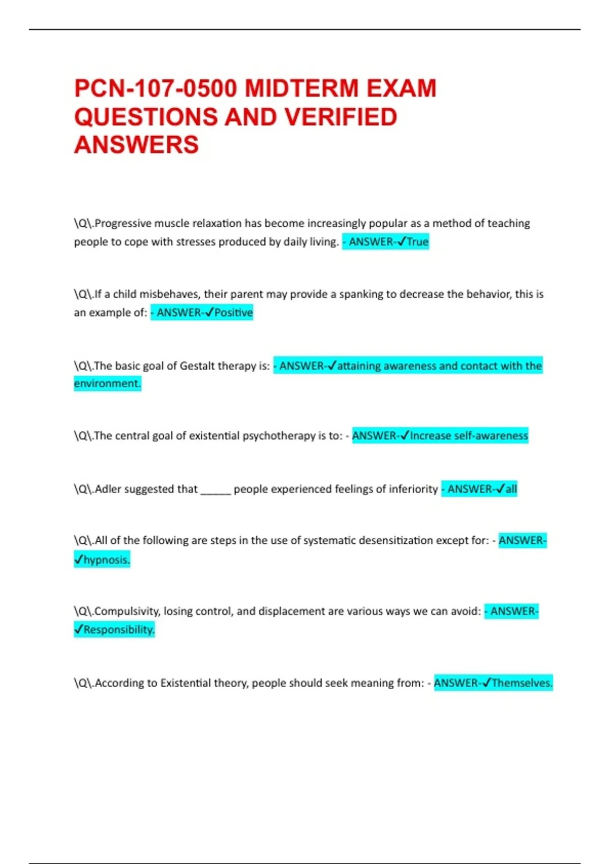 PCN-107 MIDTERM EXAM COMPLETE QUESTIONS WITH VERIFIED ANSWERS 2 Exam (elaborations) PCN-107 MIDTERM EXAM COMPLETE QUESTIONS AND 100% VERIFIED ANSWERS 3 Exam (elaborations) PCN 107 MIDTERM EXAM COMPLETE QUESTIONS WITH 100% OUTLINED ANSWERS 4 Exam (elaborations) PCN-107-0500 MIDTERM EXAM QUESTIONS AND VERIFIED ANSWERS 5 Exam (elaborations) PCN-10