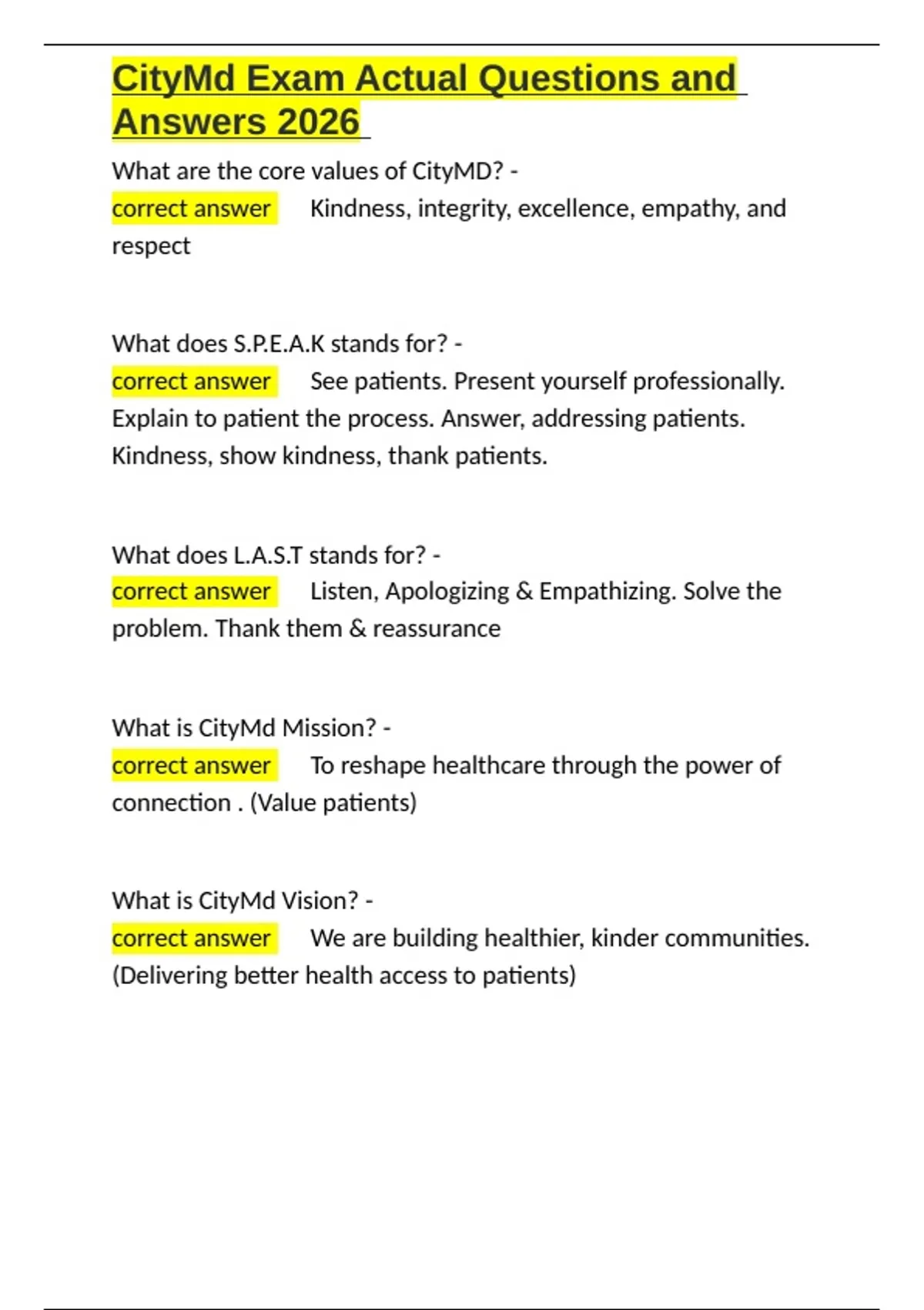 CityMD Exam Bundle With 100% Correct Answers 2025