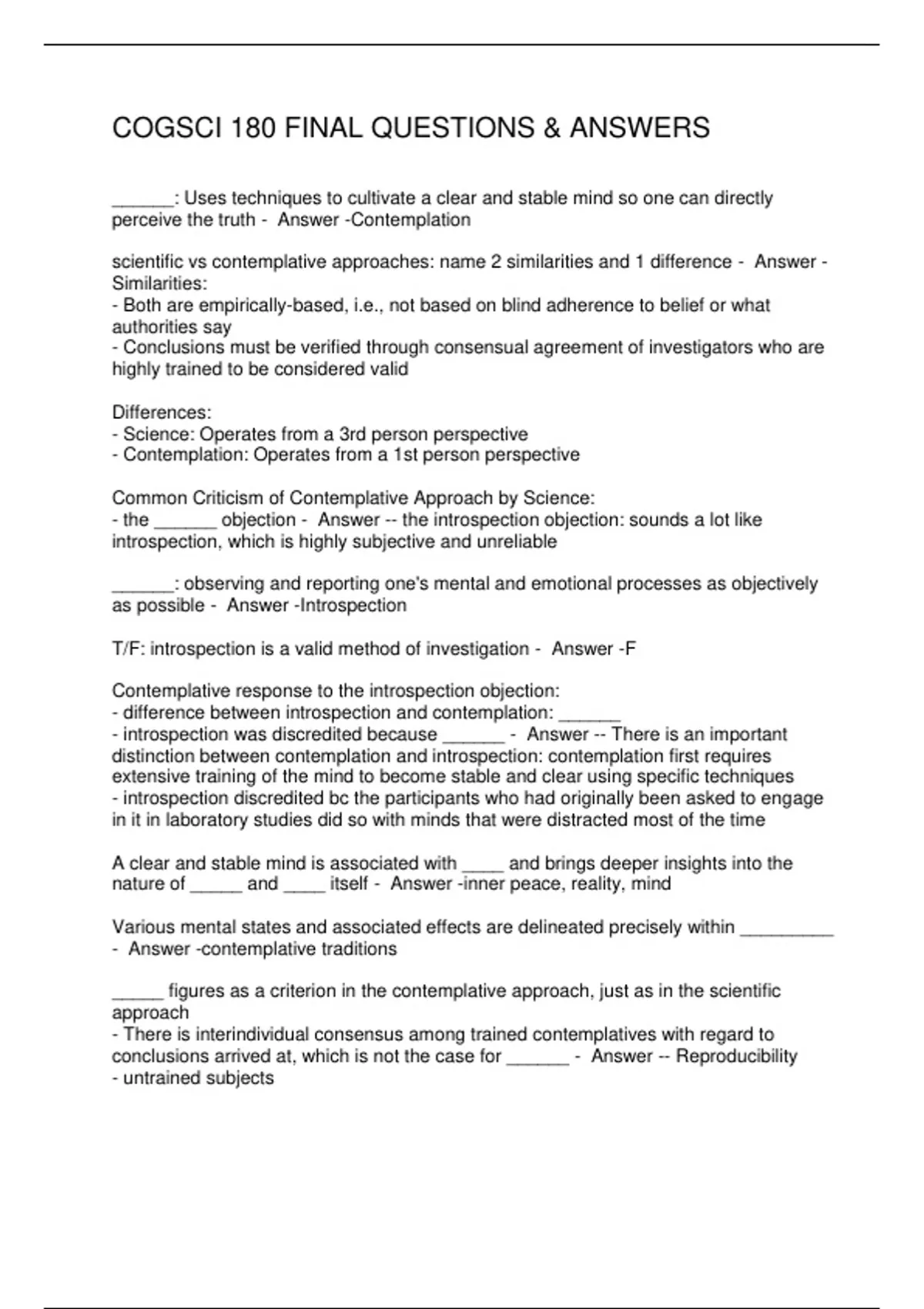 COGSCI 180 FINAL QUESTIONS & ANSWERS