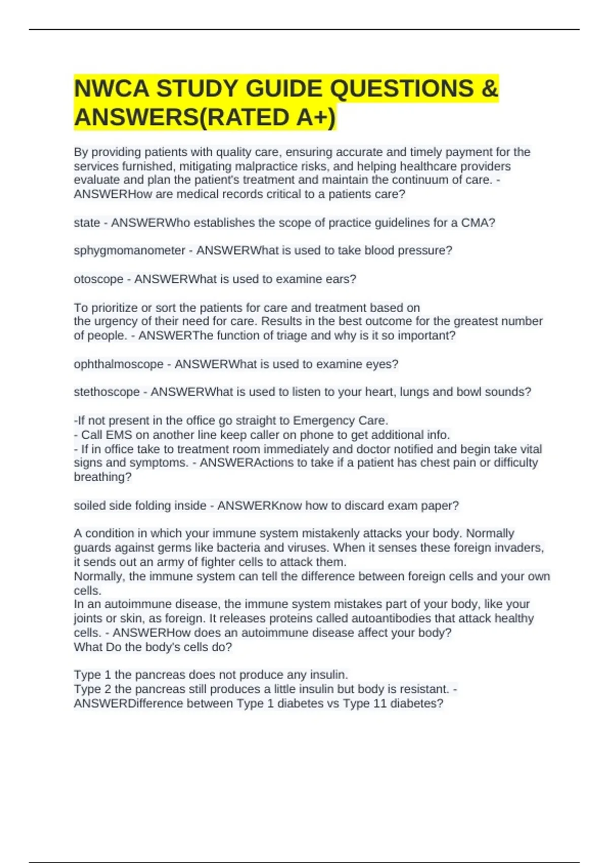 NWCA STUDY GUIDE QUESTIONS & ANSWERS(RATED A+) EXAM BUNDLE