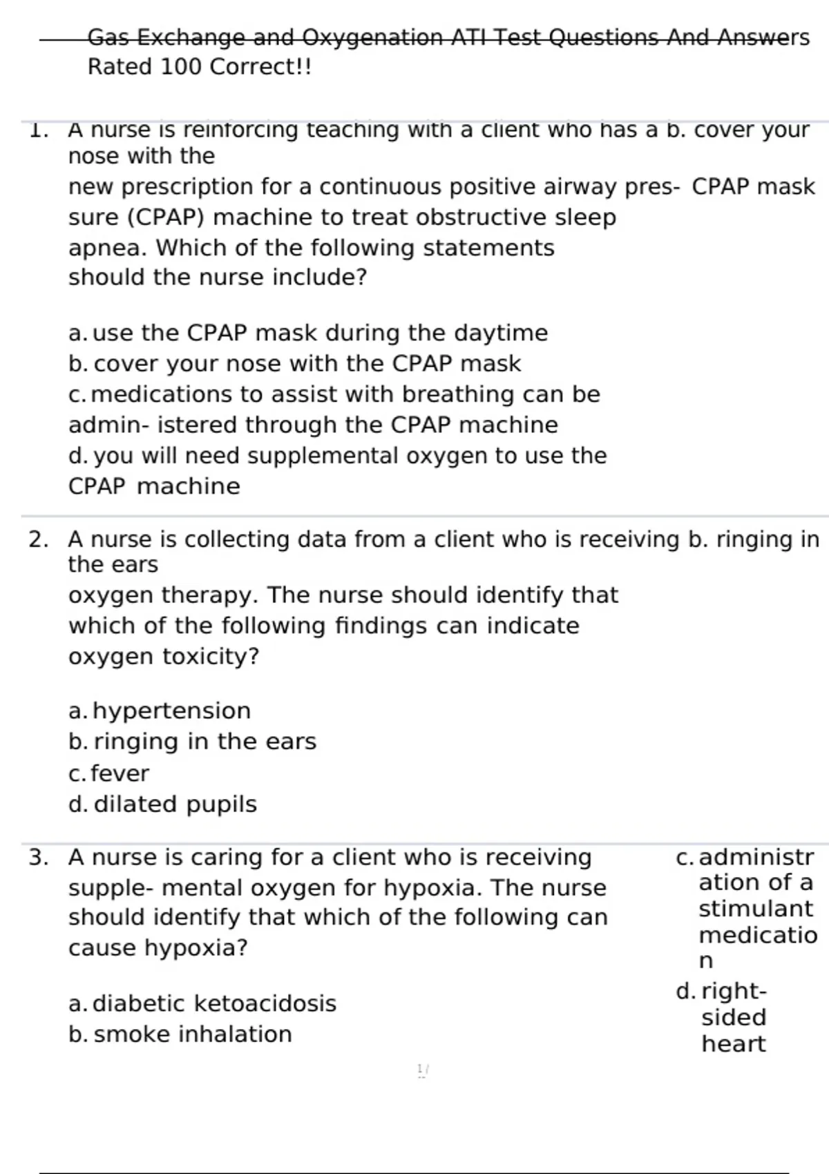 ATI gas exchange and oxygenation Exam Solved Correctly To Score A+ Gas Exchange Exam Questions And Answers Already Graded A+ | Verified Gas exchange & oxygenation Exam Questions And Answers For A+ Score