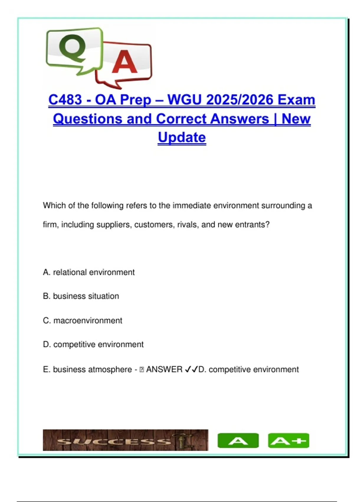 C483 WGU Exam 2025/2026 – 100+ Verified Q&A | Business Management, Leadership, Ethics, Organizational Strategy
