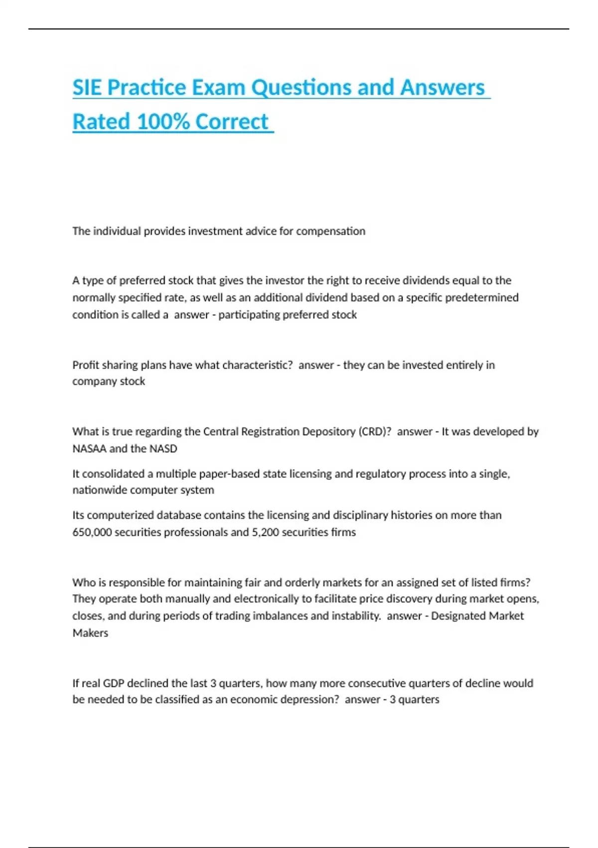 FINRA PRACTICE SIE EXAM QUESTIONS & VALID ANSWERS RATED 100% CORRECT