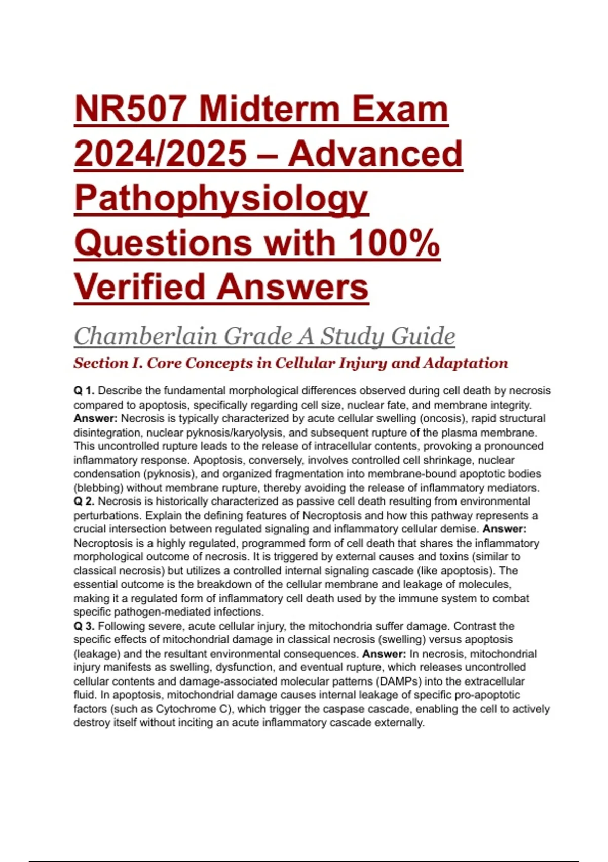 Advanced Pathophysiology PACKAGE DEAL BUNDLE – NR507 Midterm Exam (2026/2027) – Chamberlain University – Complete Exam Preparation Guide with Verified Questions & Answers