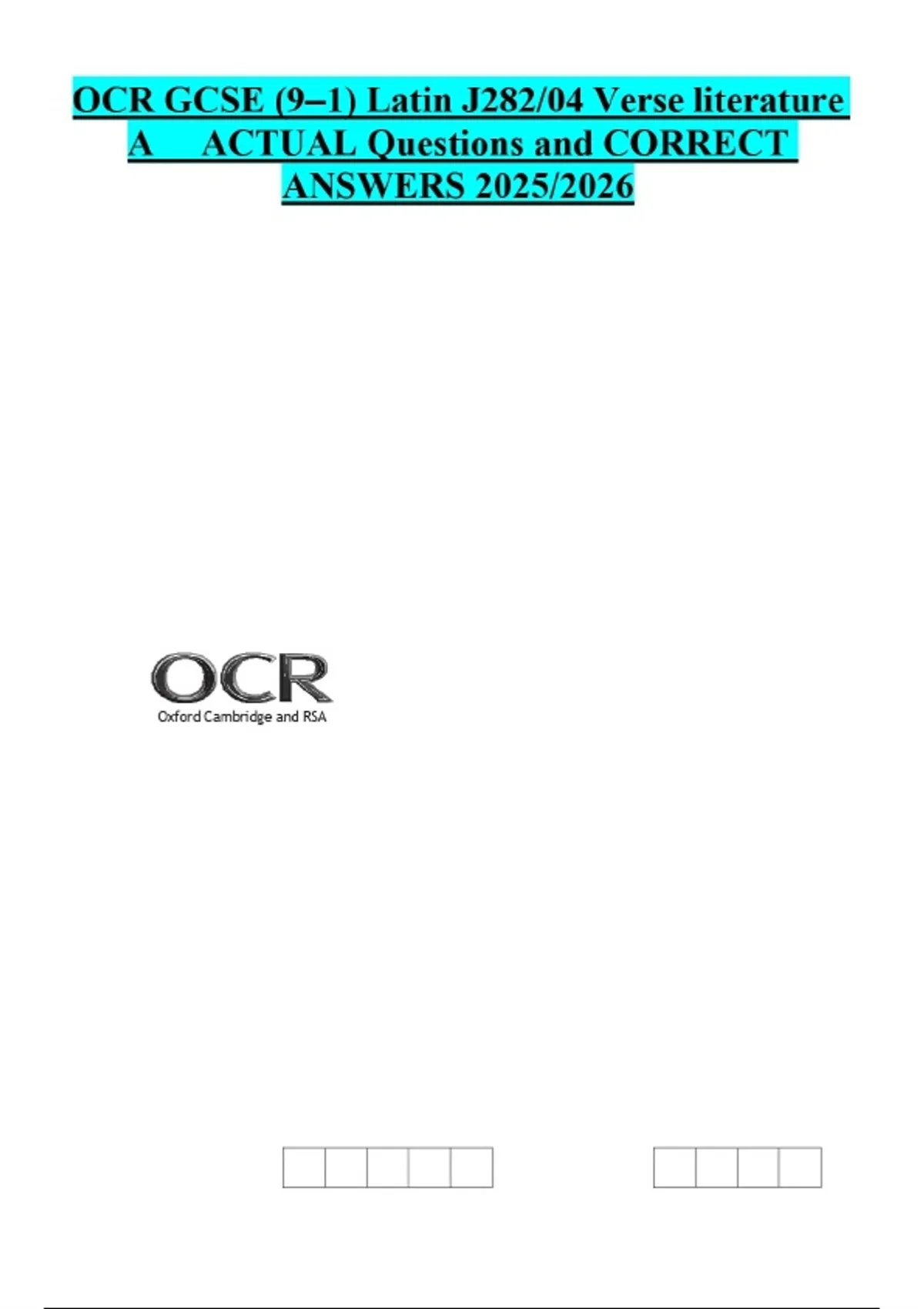 OCR GCSE (9–1) Latin J282/04 Verse literature A ACTUAL Questions and CORRECT ANSWERS 2025/2026
