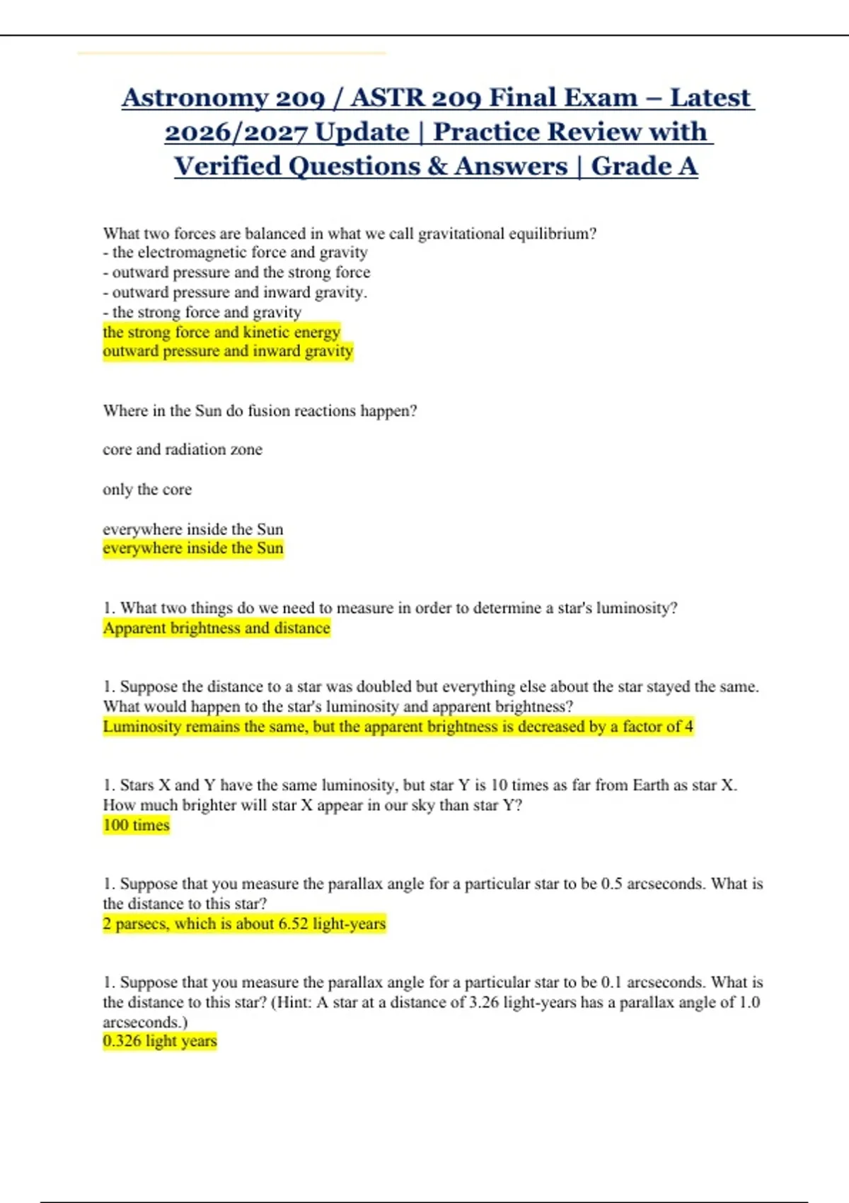 Astronomy 209 / ASTR 209 — Midterm Exams, Final Exams & Assignments (Latest 2026/2027 Updates) | Complete Study Bundle Package with Solutions | 100% Verified Questions & Answers | Grade A