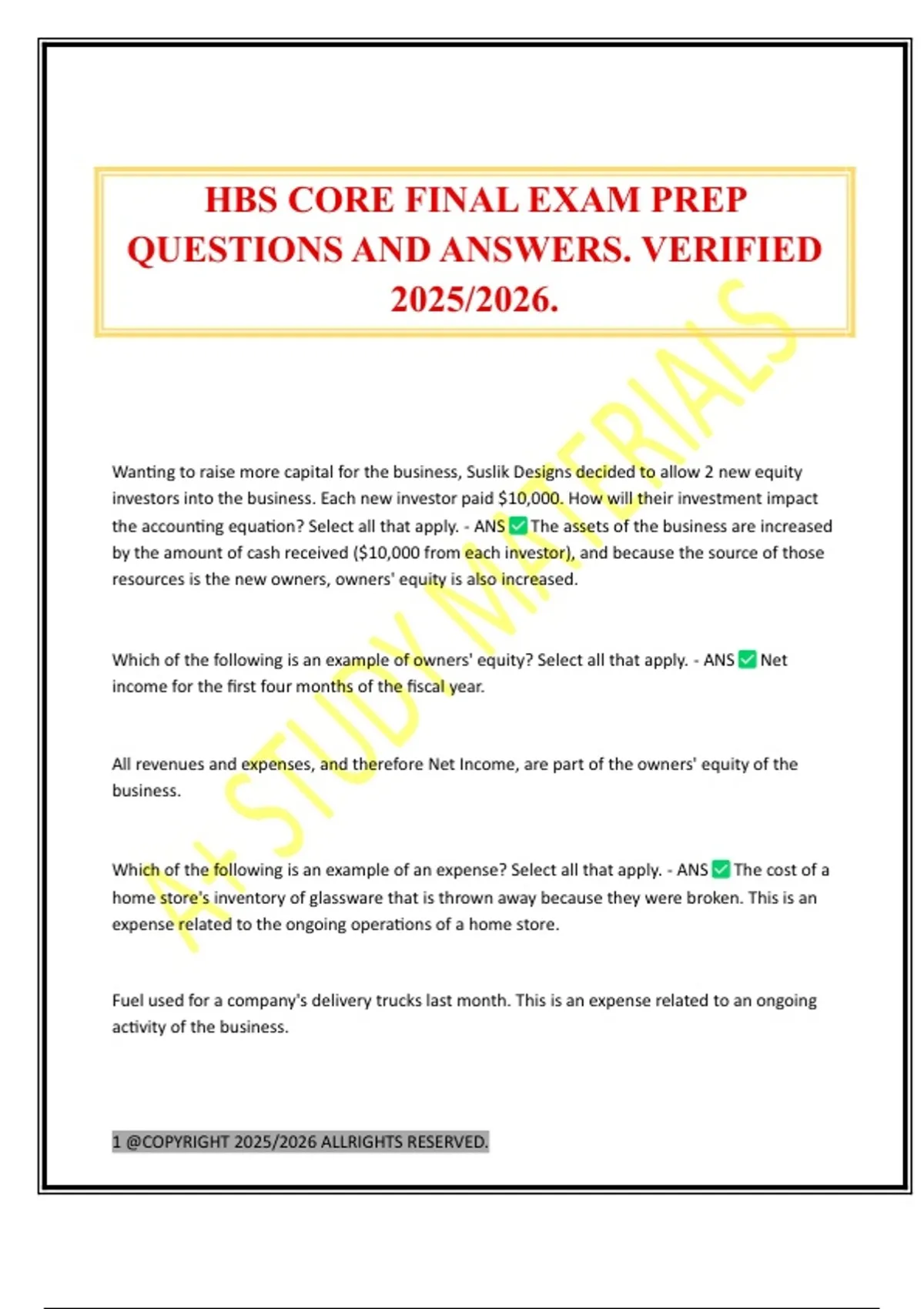 HBS CORE FINAL EXAM PREP QUESTIONS AND ANSWERS. VERIFIED 2025/2026.