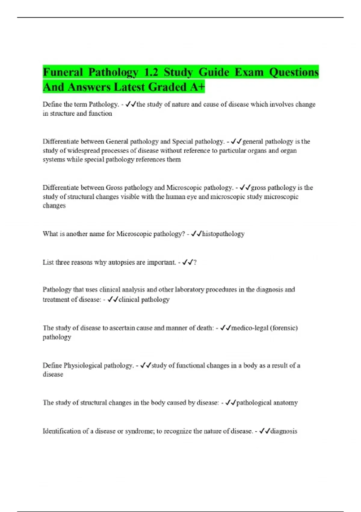 Funeral Pathology 1.4 Study Guide Exam Questions And Answers Latest Graded A+