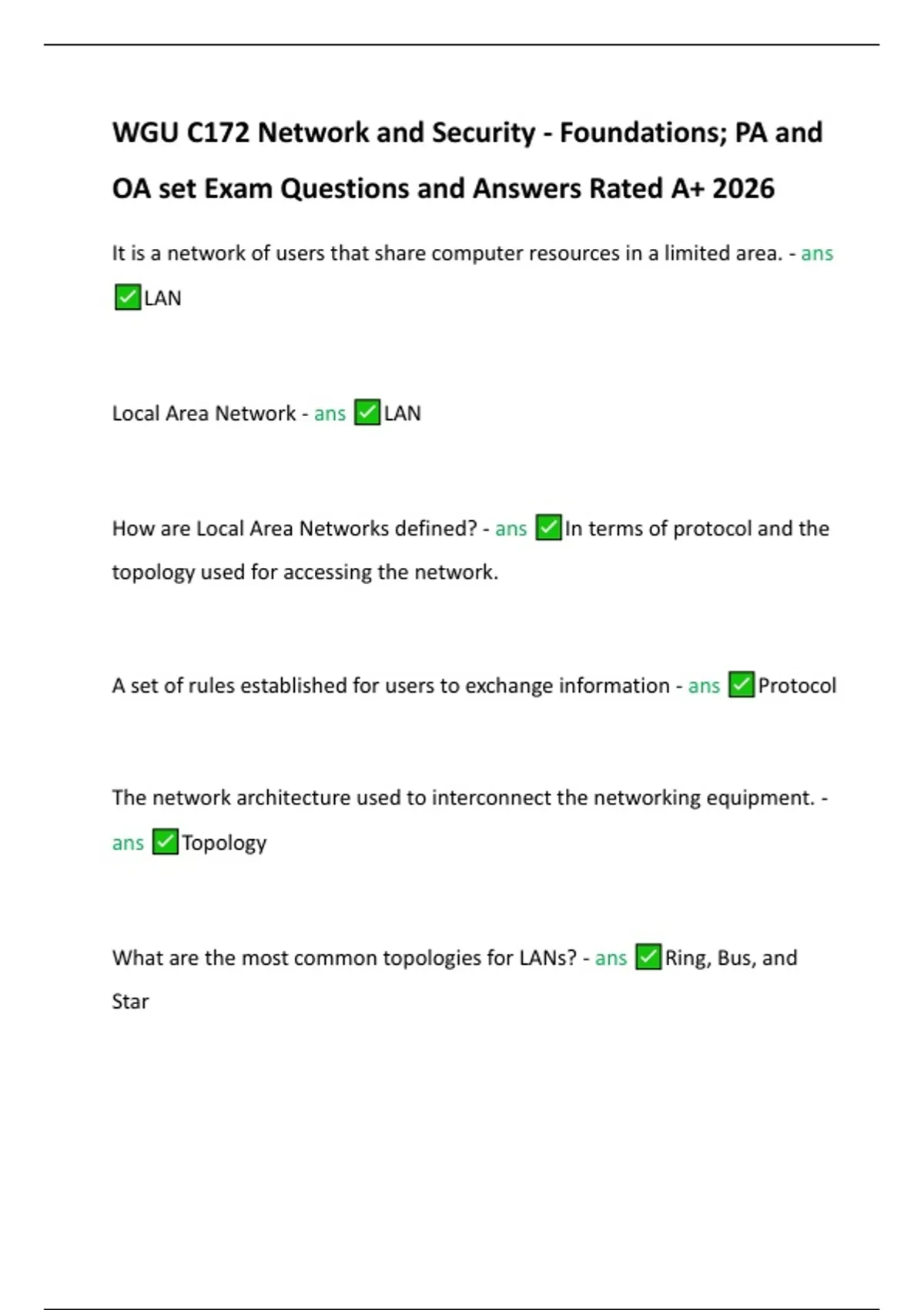 C172 Network and Security – Foundations (WGU) – FINAM Exam 2026 bundle