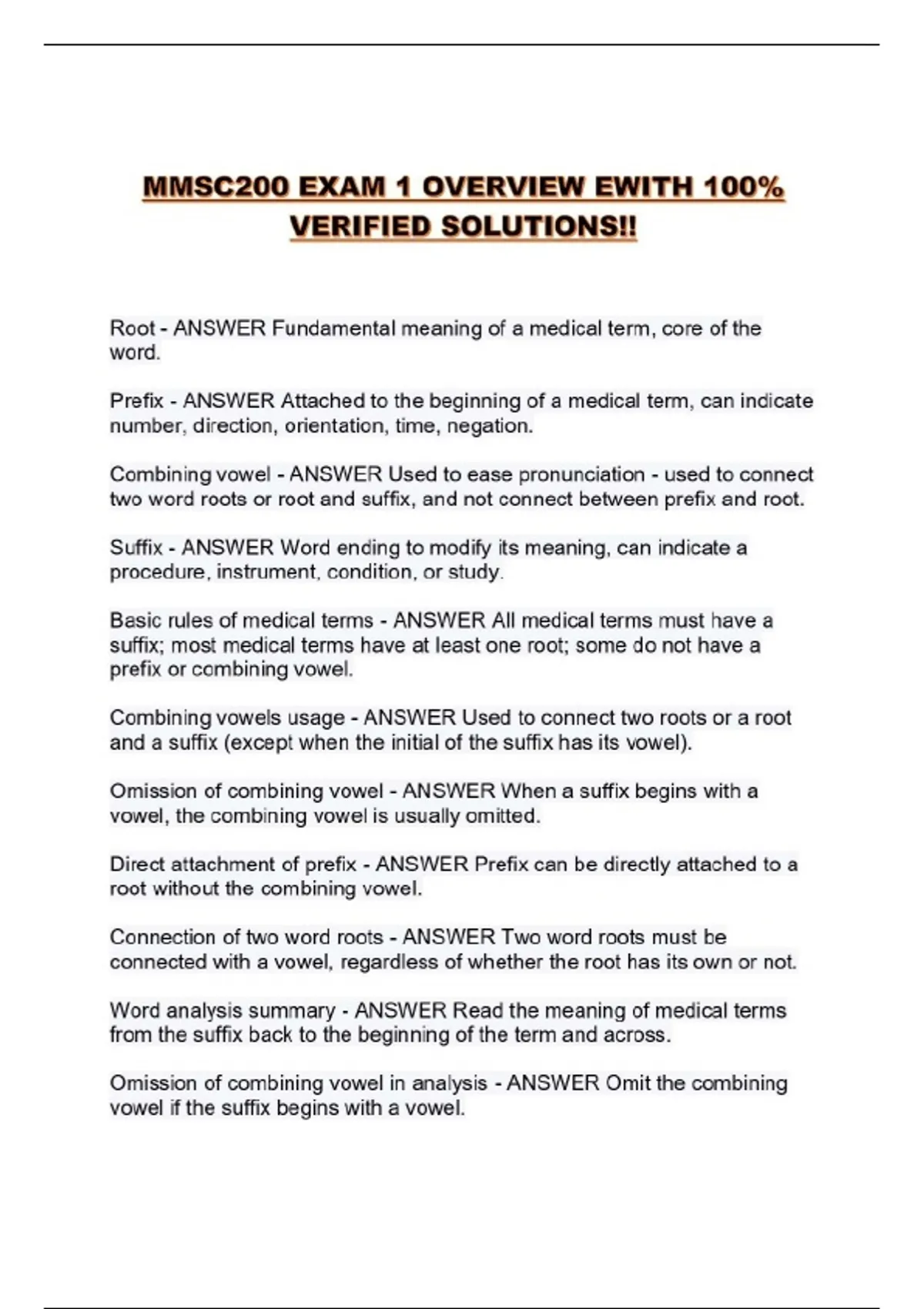 MMSC200 EXAM 1 OVERVIEW EXAM WITH 100% VERIFIED SOLUTIONS!!