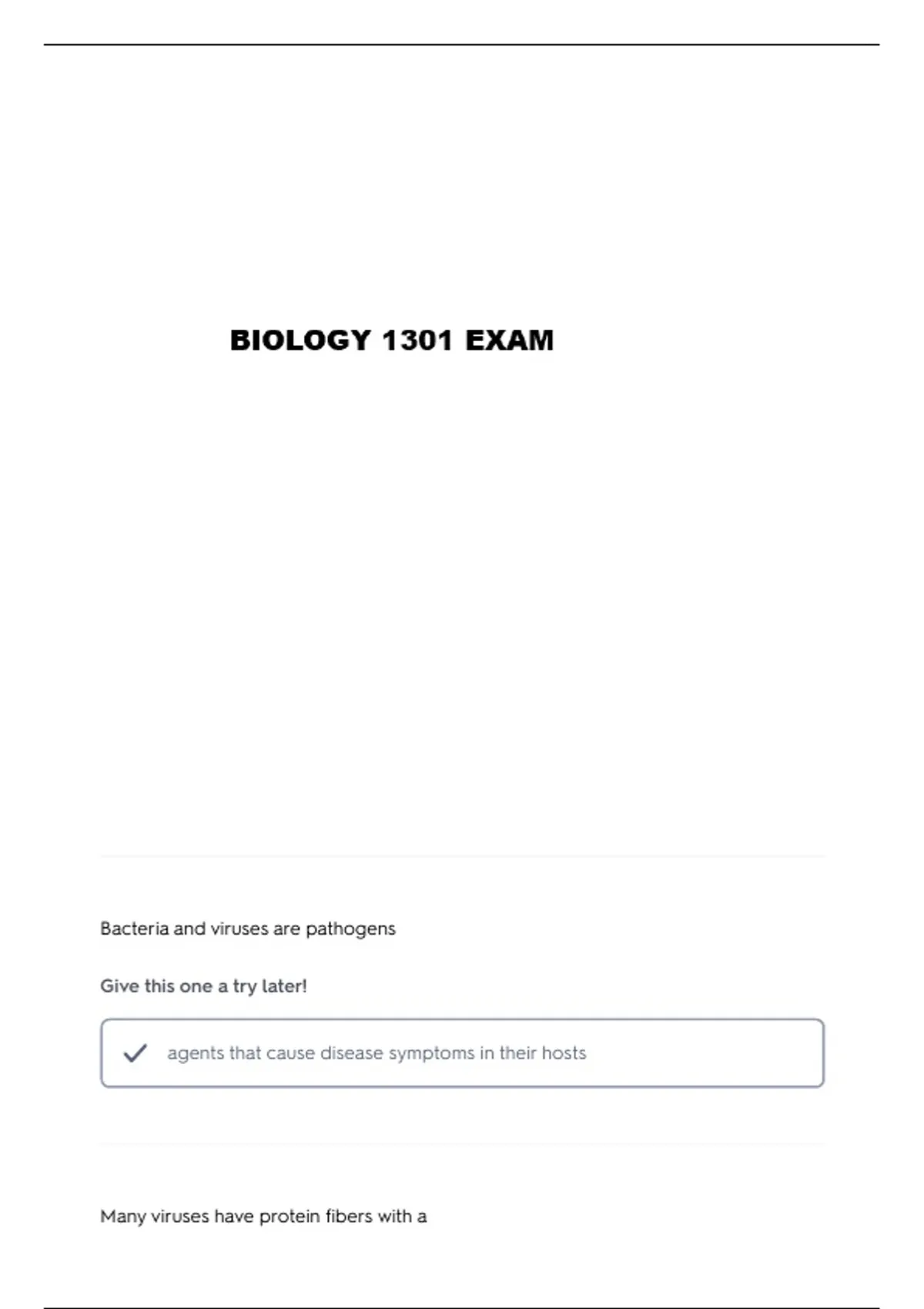 BIOLOGY 1301 EXAM 1 QUESTIONS AND VERIFIED ANSWERS