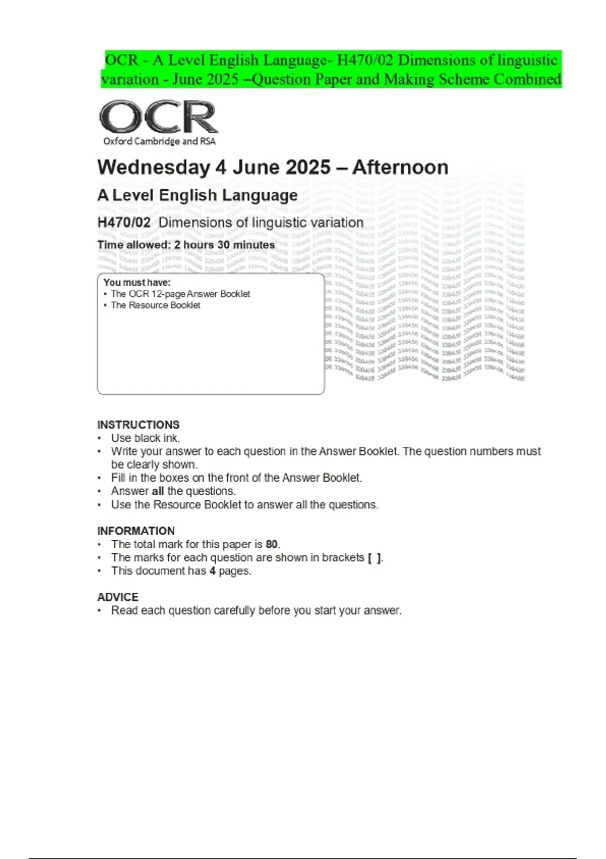 2025 OCR GCSE (9–1) English Language J351/01 Communicating information and ideas May QUESTION PAPER and MARK SCHEME MERGED