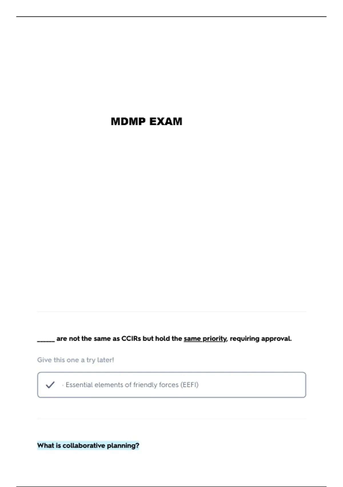MDMP EXAMS WITH 100% CORRECT ANSWERS