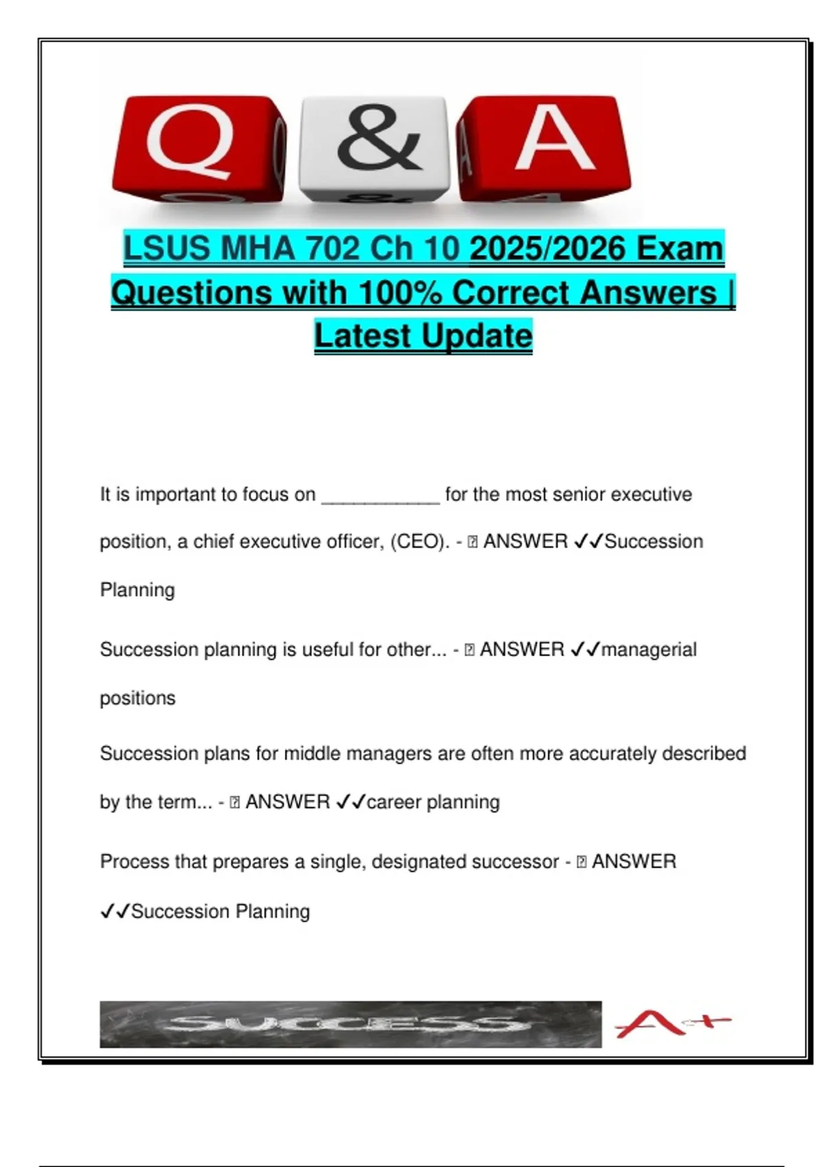 MHA 702 EXAM COMPLETE PACKAGE DEAL