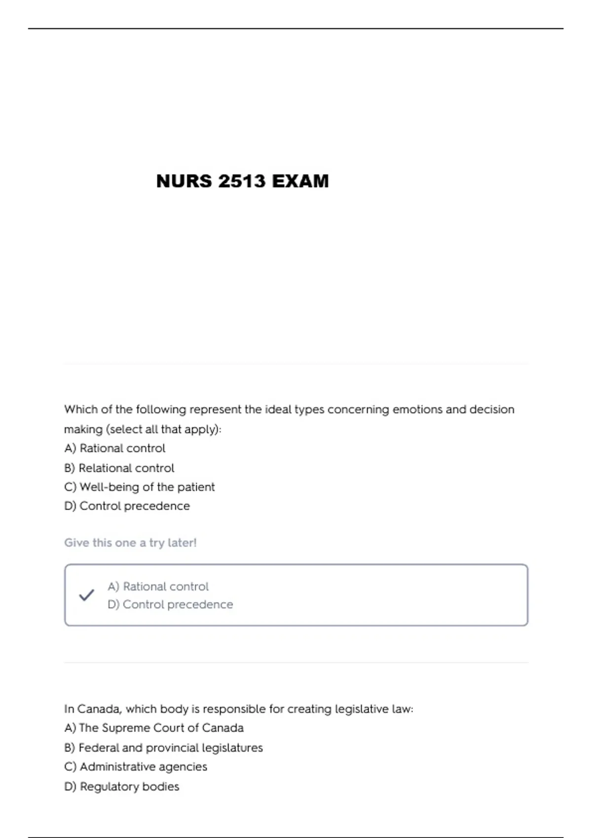 NURS 2513 EXAMS WITH 100% CORRECT ANSWERS