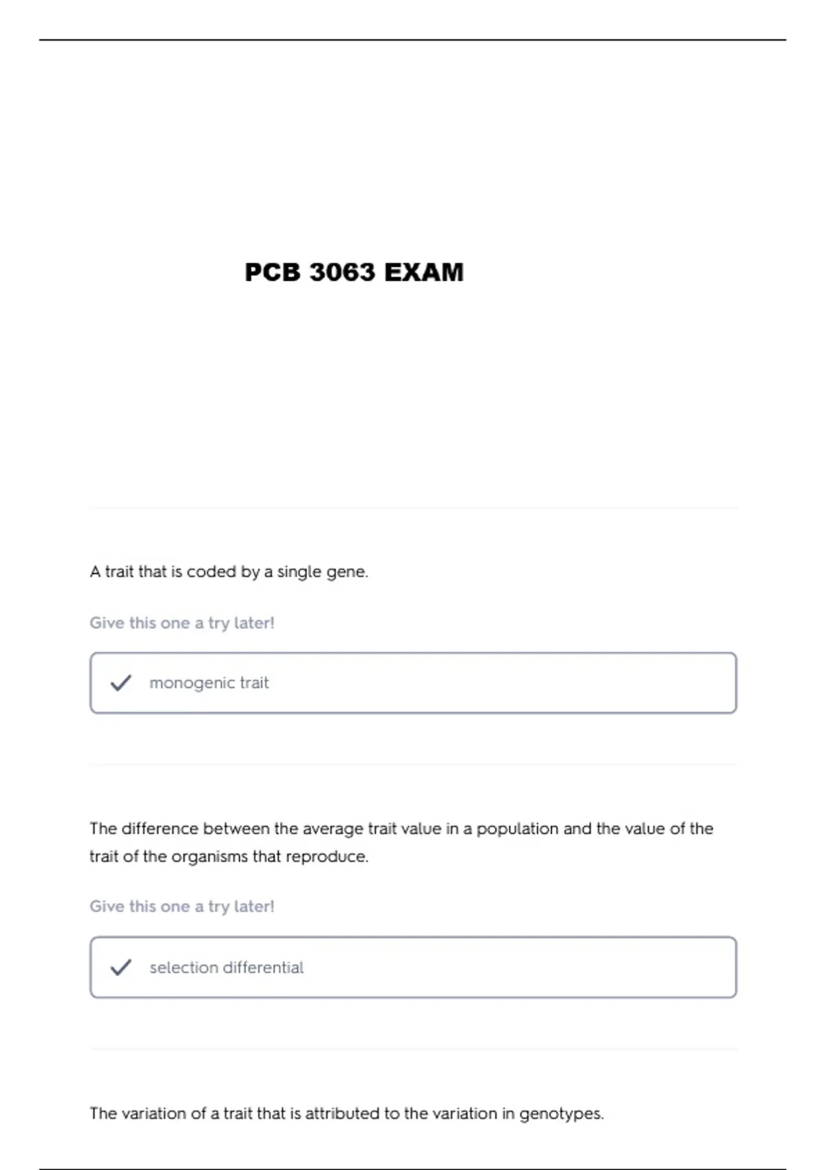 PCB 3063 EXAM 2 QUESTIONS AND VERIFIED ANSWERS