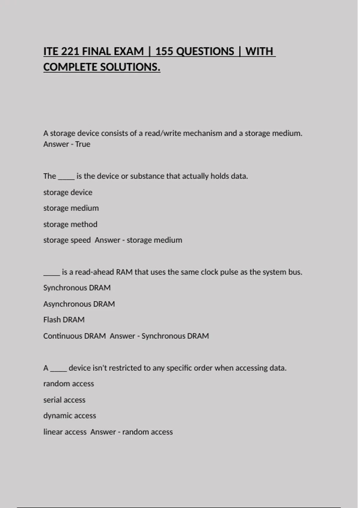 EXAM 2 ITE 221 | 162 QUESTIONS AND ANSWERS | WITH COMPLETE SOLUTION!!,ITE 221 - PC HARDWARE & O/S ARCHITECTURE - EXAM 1 | 204 QUESTIONS | WITH COMPLETE SOLUTION!!,ITE 221 EXAM #3 QUESTIONS WITH 100% SOLVED ANSWERS.,ITE 221 EXAM 1 WRITTEN QUESTIONS WITH 100% CORRECT ANSWERS.,ITE 221 EXAM 2 | 139 QUESTIONS AND ANSWERS | WITH COMPLETE SOLUTION!!