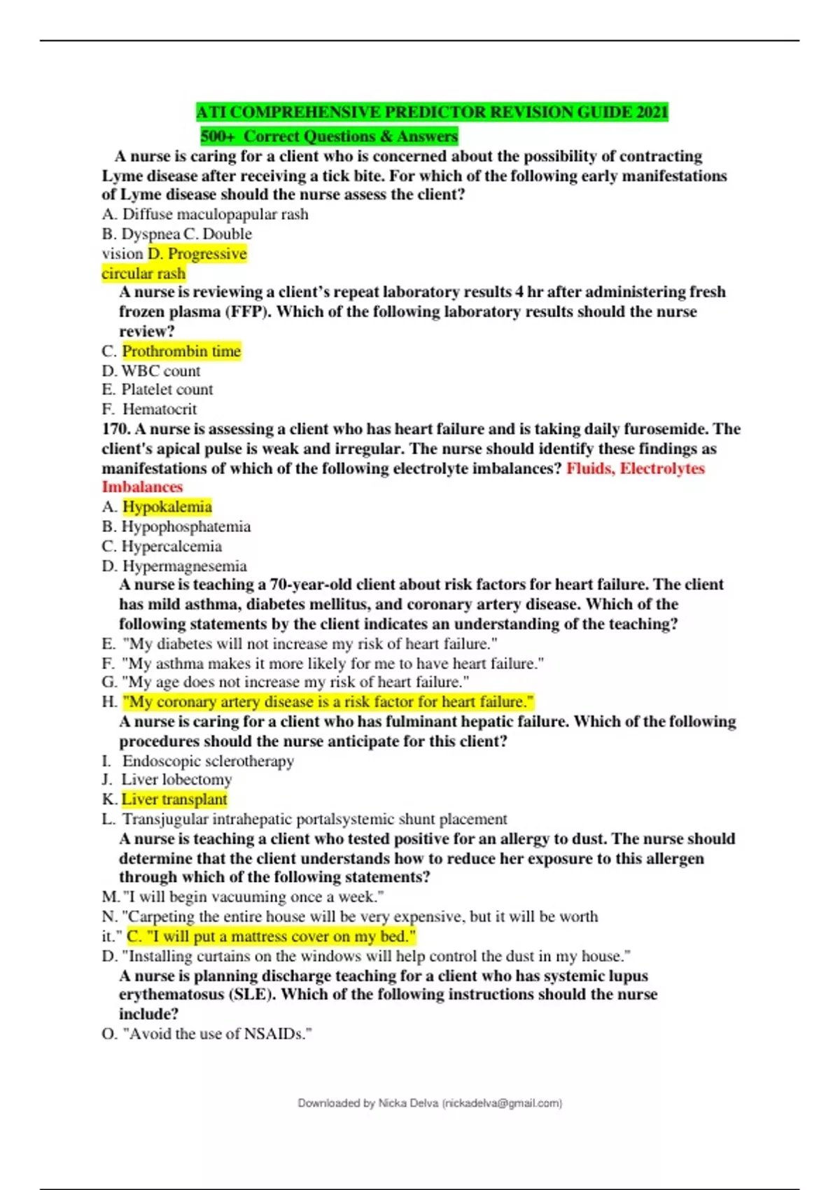 ATI Comprehensive Predictor Exit Exam 2023/2025 with NGN – Complete Set of 180 High-Yield Practice Questions and Answers for NCLEX Preparation and Nursing Competency Assessment”