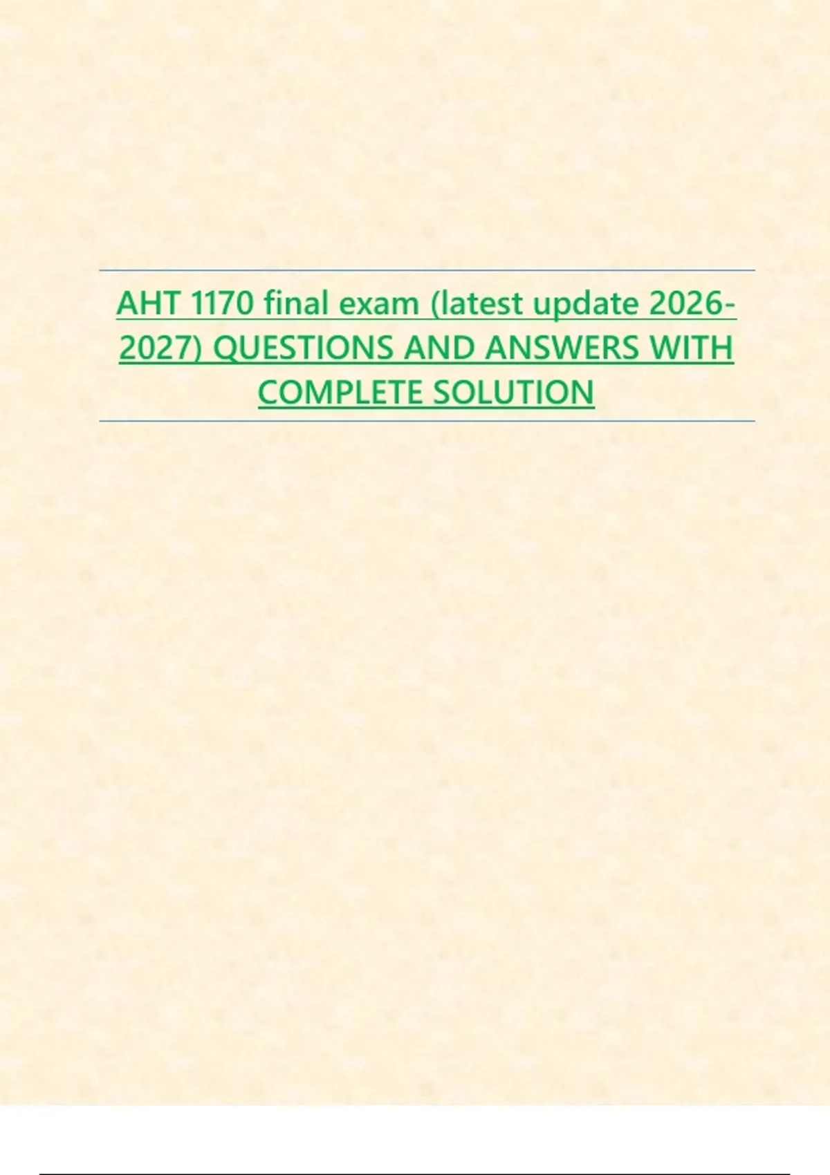 AHT 1170 MODULE A QUIZ AND ASSIGNMENTS (latest update STUDY BUNDLE PACKAGE WITH SOLUTIONS) QUESTIONS AND ANSWERS WITH COMPLETE SOLUTION