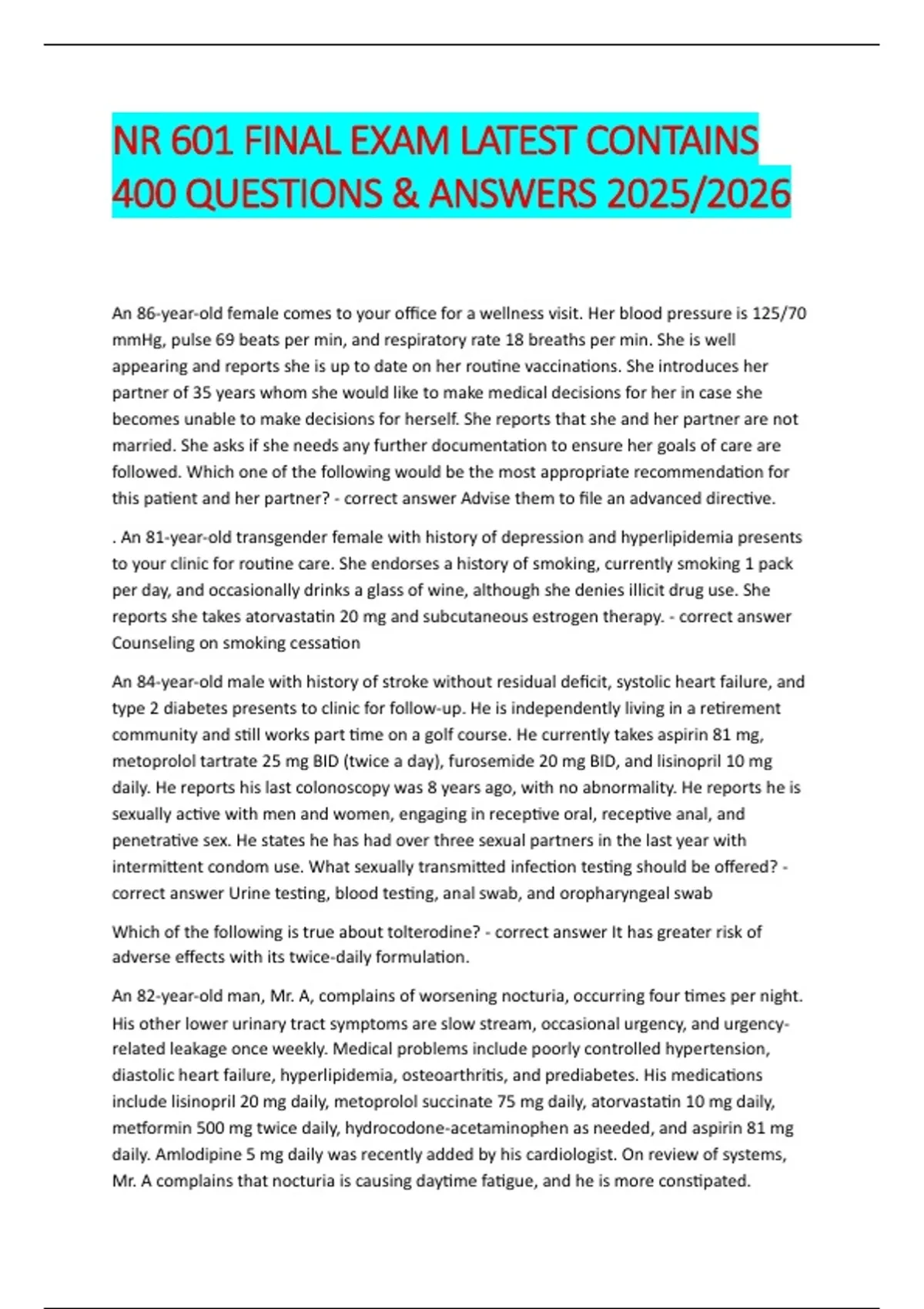 NR 601 FINAL EXAM LATEST CONTAINS 400 QUESTIONS & ANSWERS 2025/2026