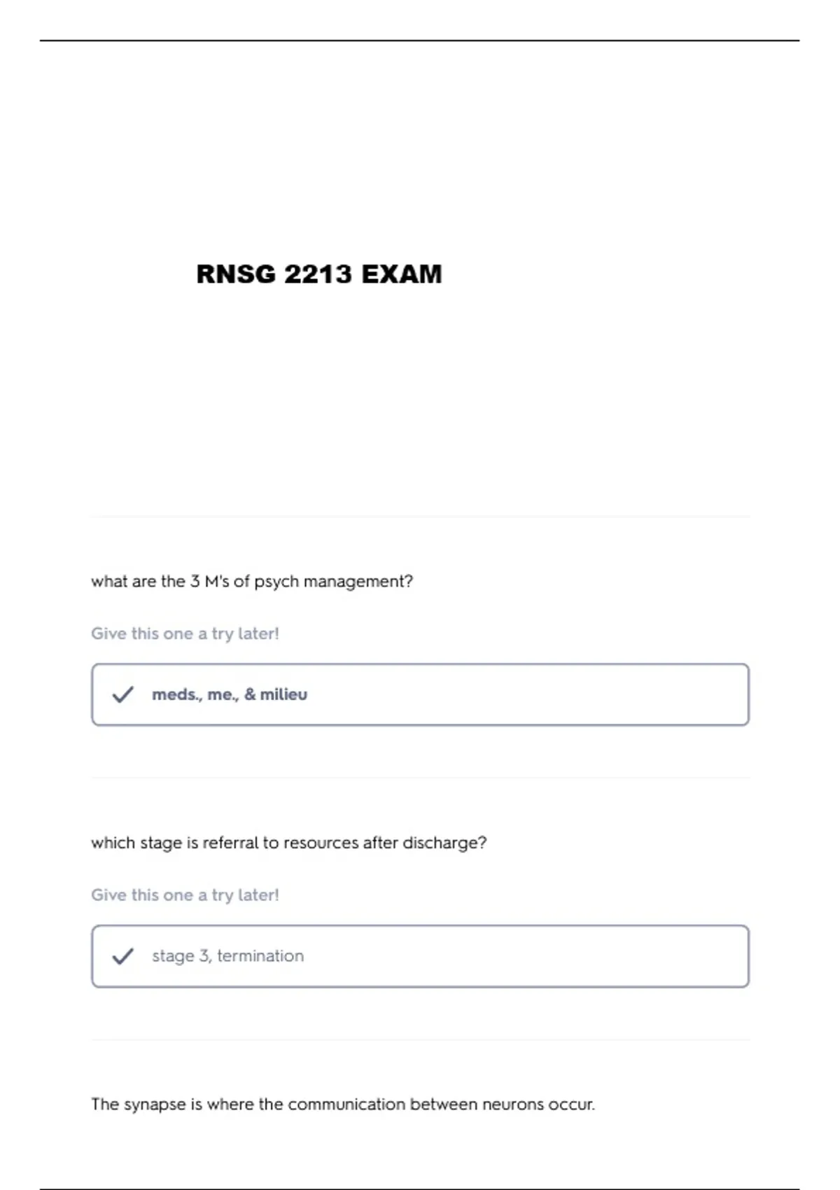 RNSG 2213 MENTAL HEALTH E1 QUESTIONS AND VERIFIED ANSWERS