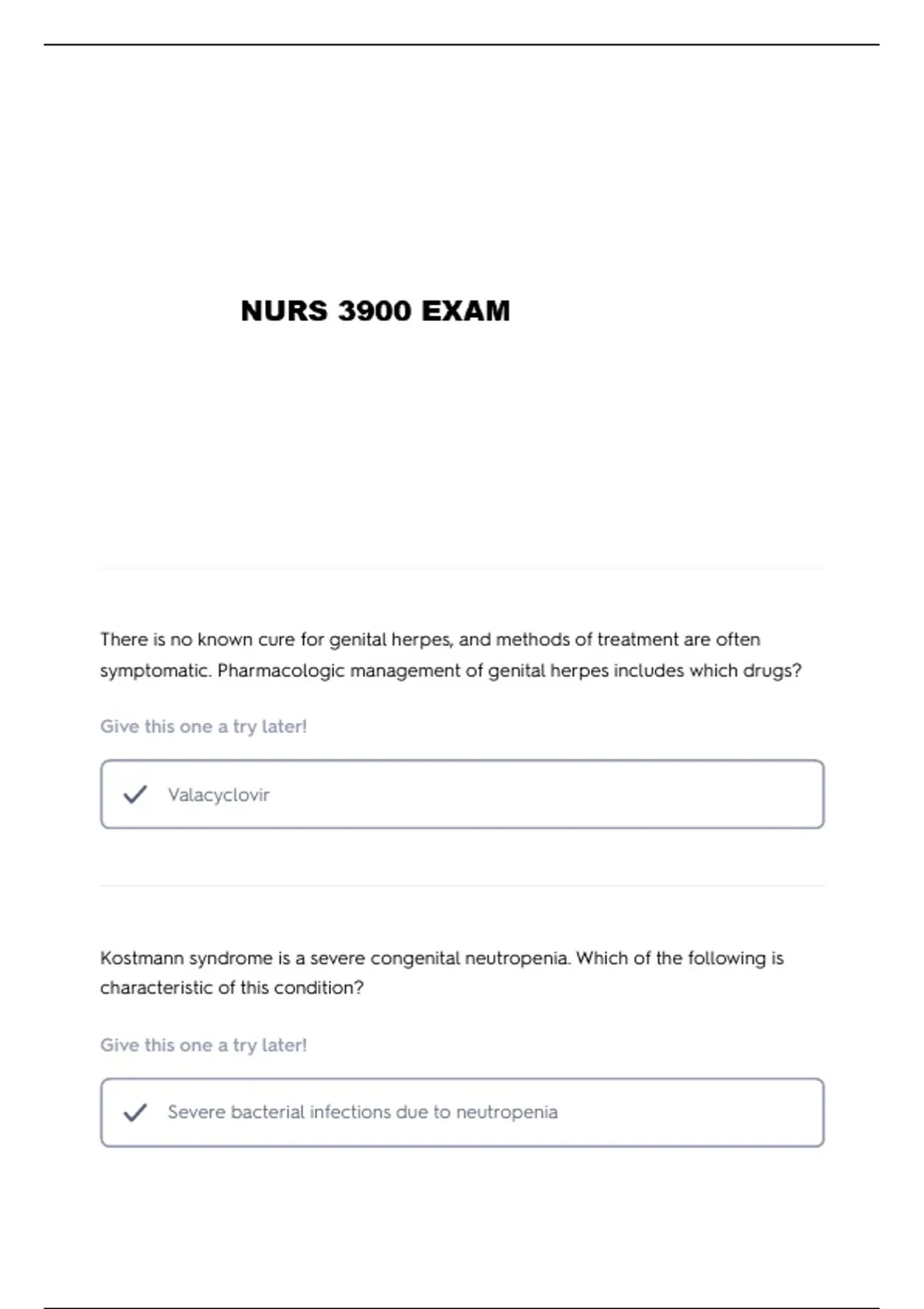NURS 3900 EXAMS WITH 100% CORRECT ANSWERS