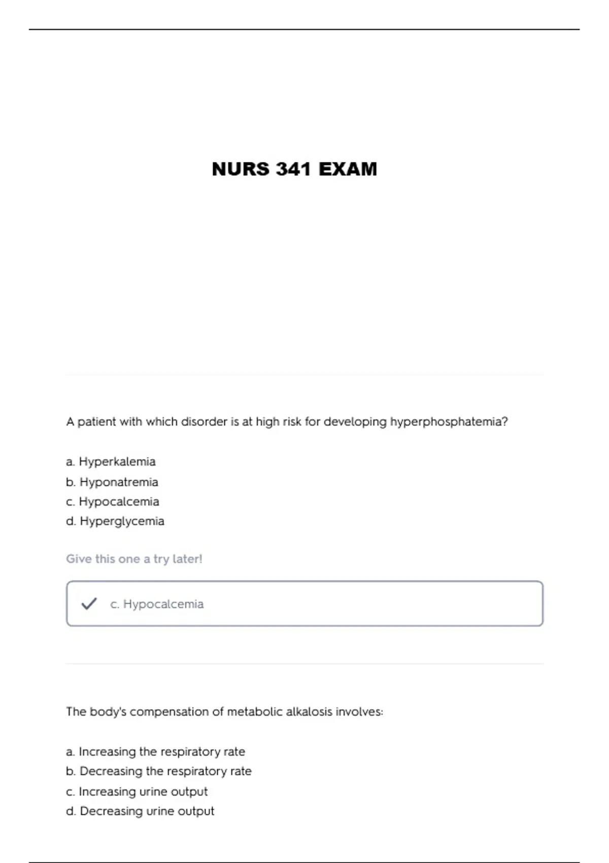 NURS 341 EXAMS WITH 100% CORRECT ANSWERS