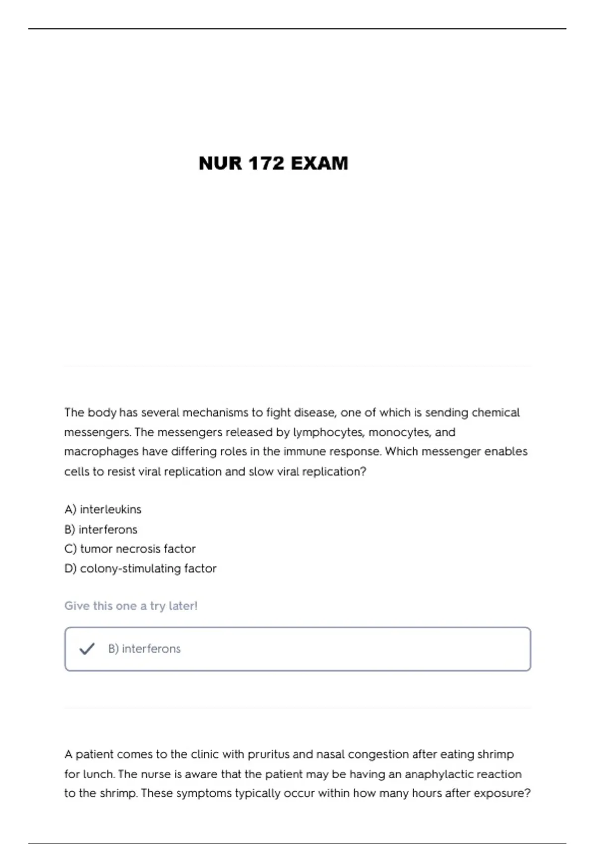 NUR 172 EXAMS WITH 100% CORRECT ANSWERS