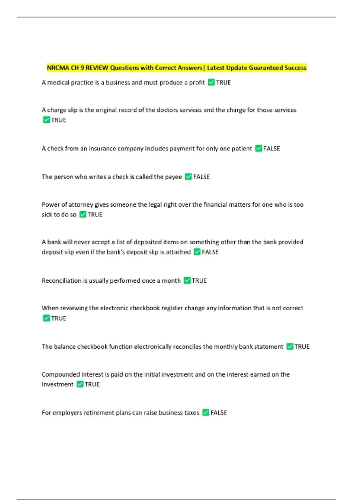 NRCMA-National Credential Review Chapter 1 Questions with Correct Answers| Latest Update Guaranteed Success 13 Exam (elaborations) NAHP EXAM (NRCMA) - Medical Terminology Questions with Correct Answers| Latest Update Guaranteed Success 14 Exam (elaborations) NRCMA Practice test (1) Questions with Correct Answers| Latest Update Guaranteed Success 15