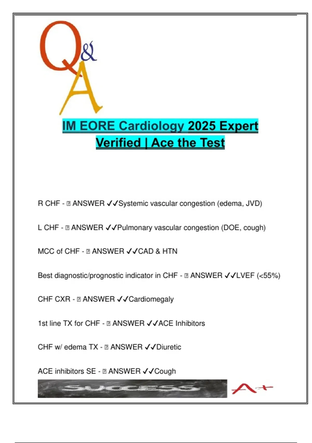 Cardiology IM EORE (Internal Medicine) | 50 Questions | CHF, HTN, Murmurs, ACS | 2025